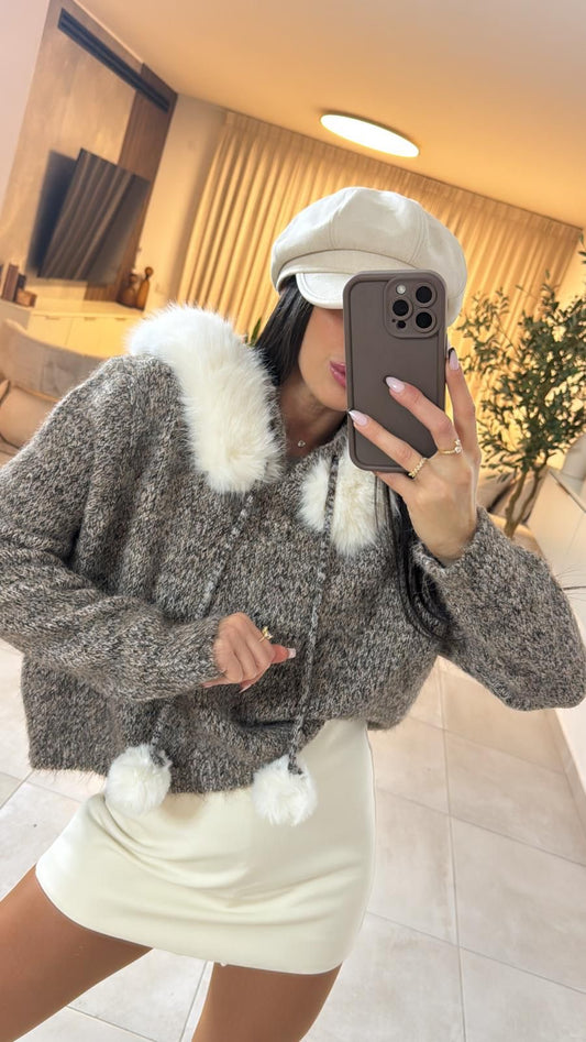 אזל מהמלאיקרדיגן סריג קפוצ׳ון פרווה