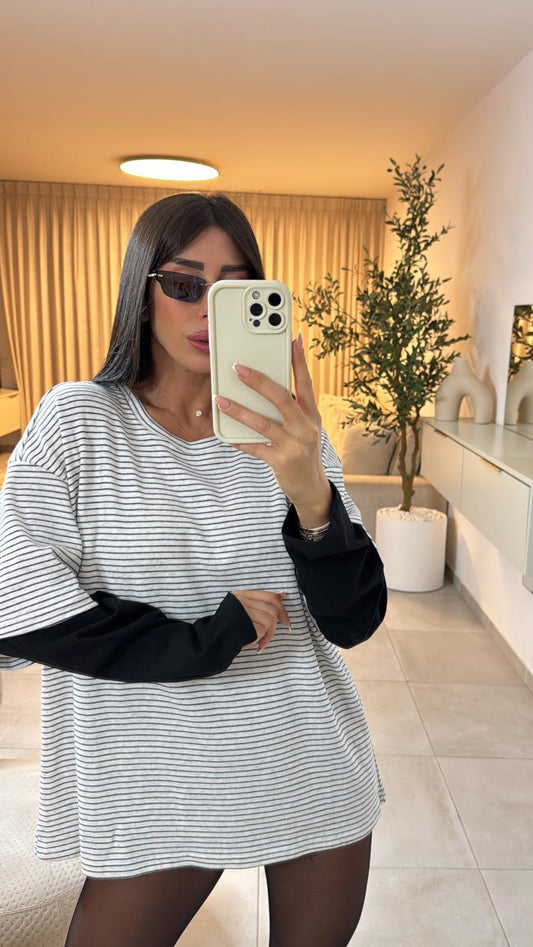 חולצה פסים שילוב שרוול