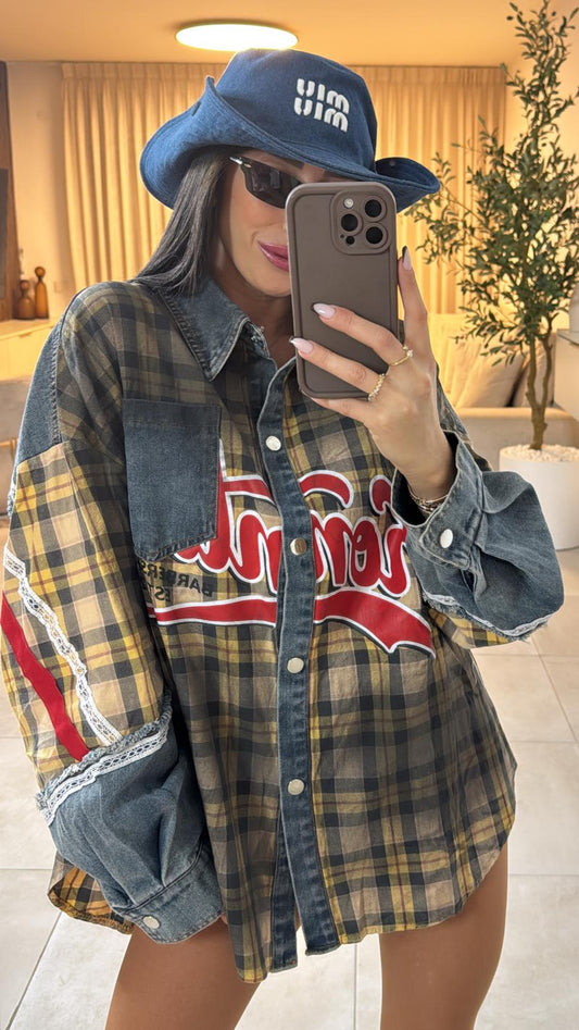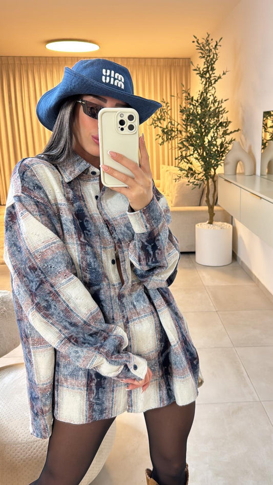 מכופתרת משבצות אוברסייז
