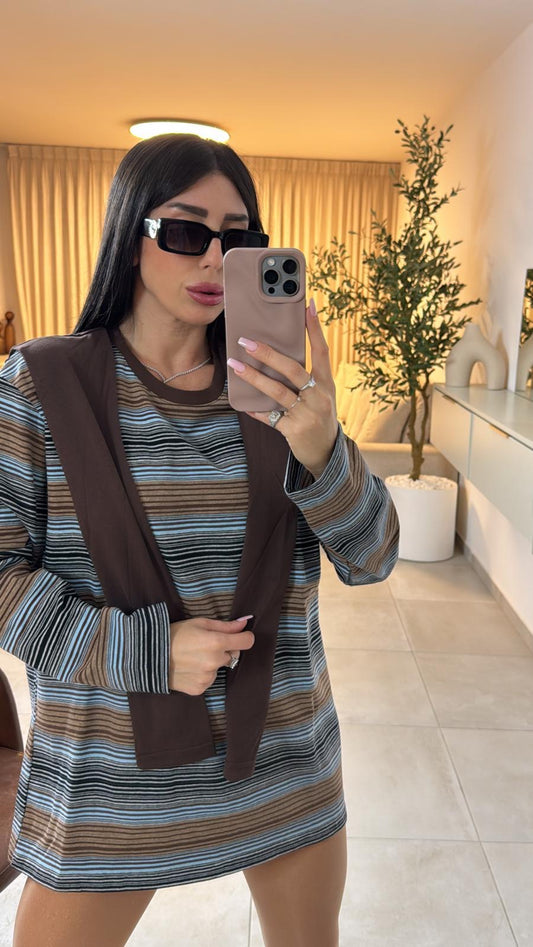 אזל מהמלאיחולצה פסים שילוב צעיף