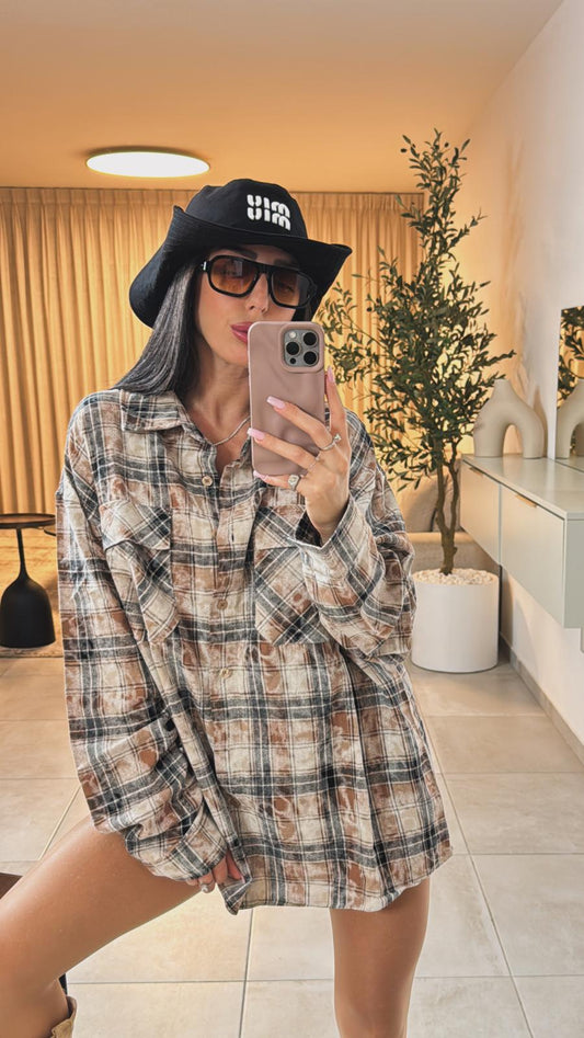 אזל מהמלאיחולצה ג׳ינס שילוב משבצות