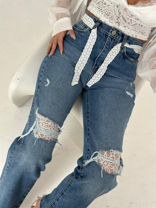 ג׳ינס בשילוב חגורת תחרה