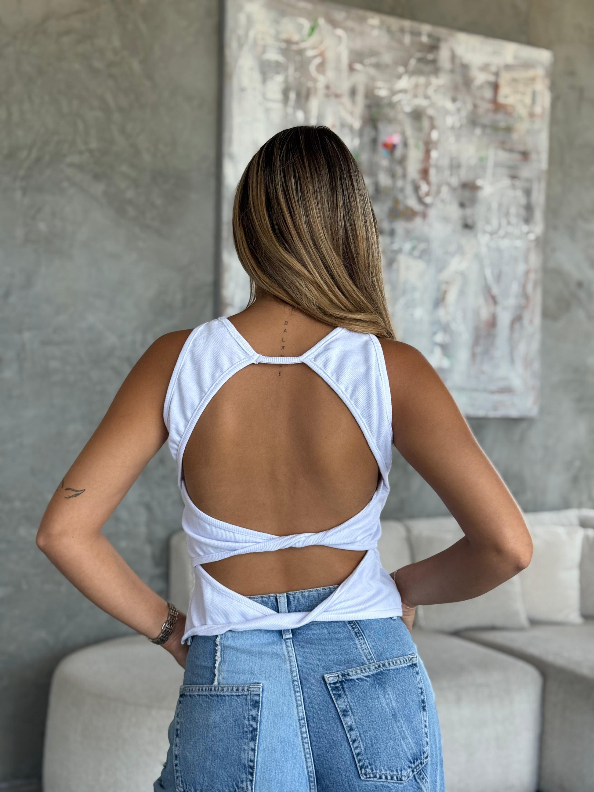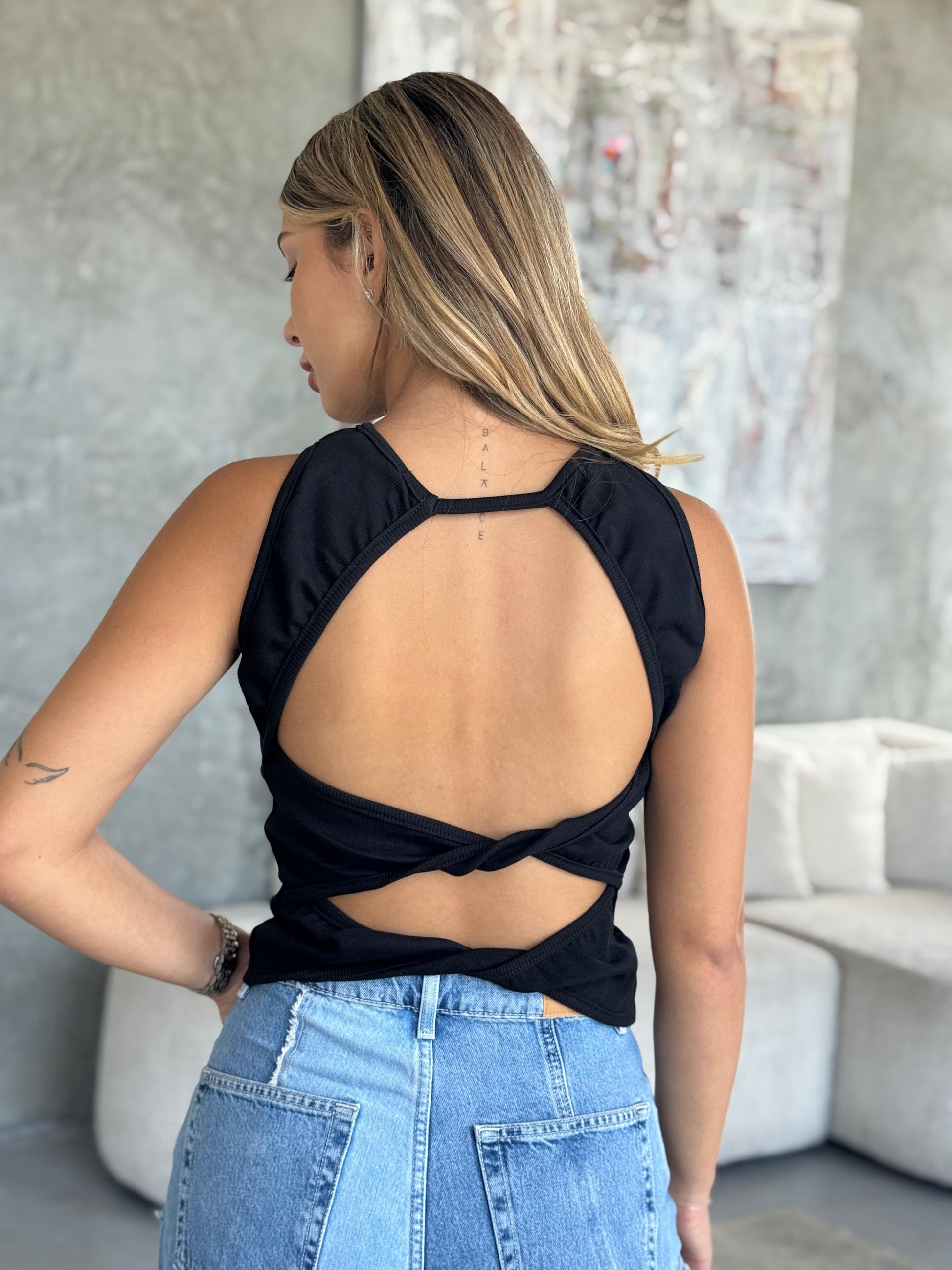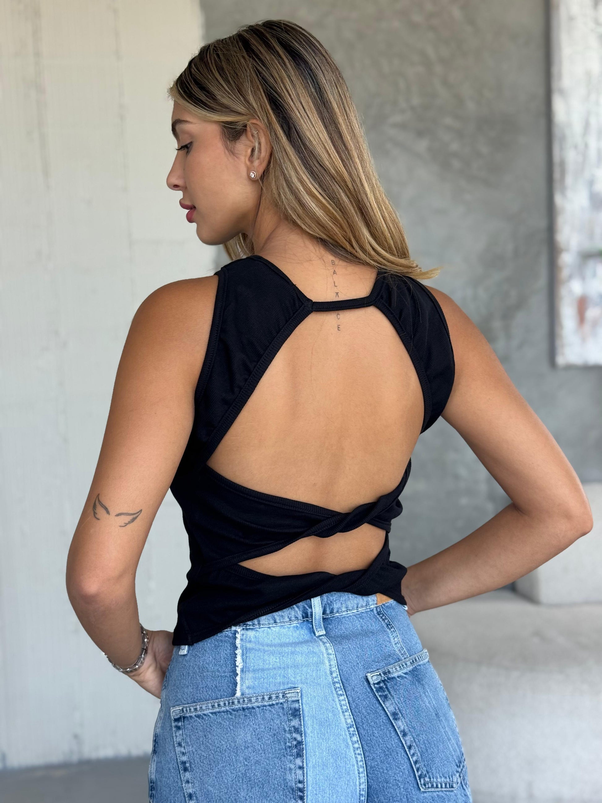 בגב – עיצוב פתוח עם קשירות קרוס-אובר אופנתיות.