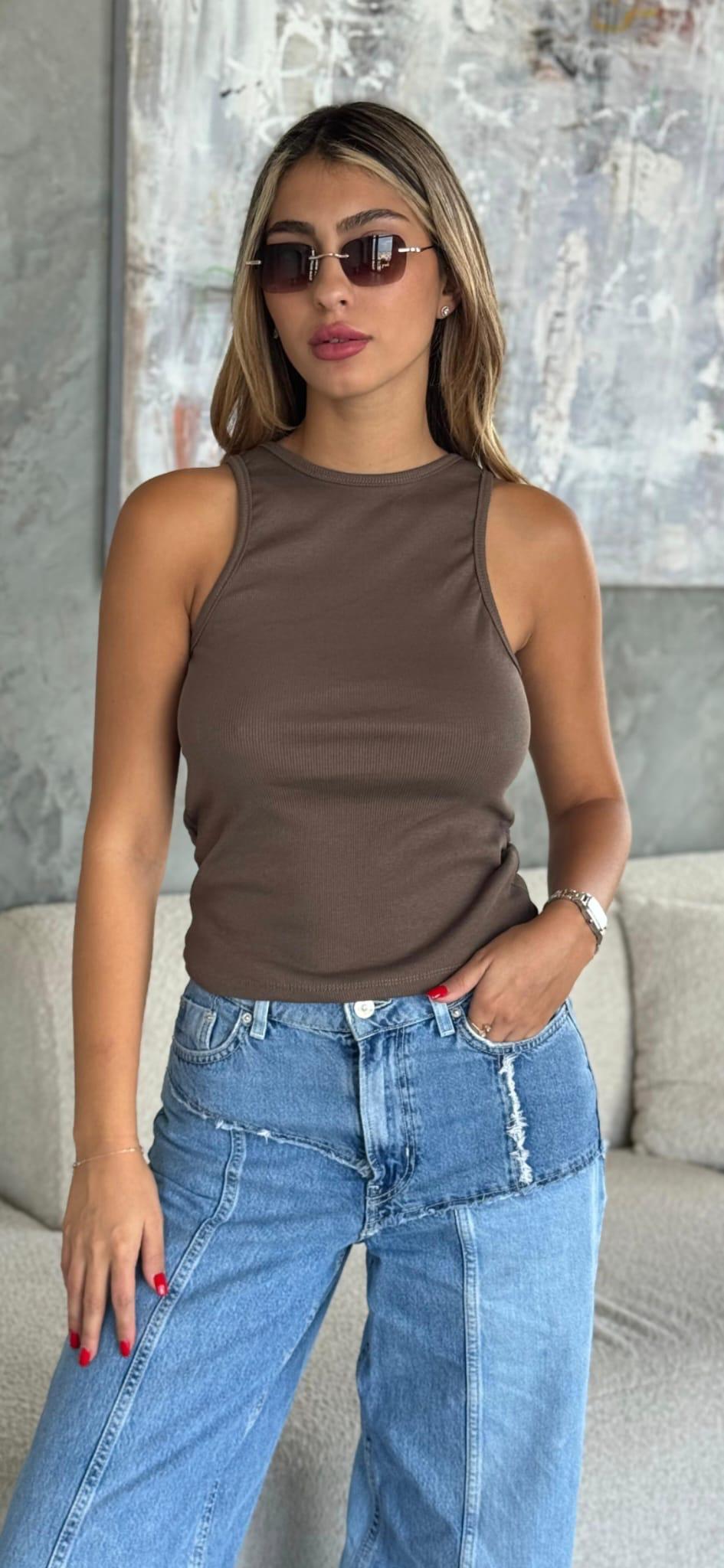גופיה צמודה ומחטבת בגזרת קרופ עם מפתח קולר.