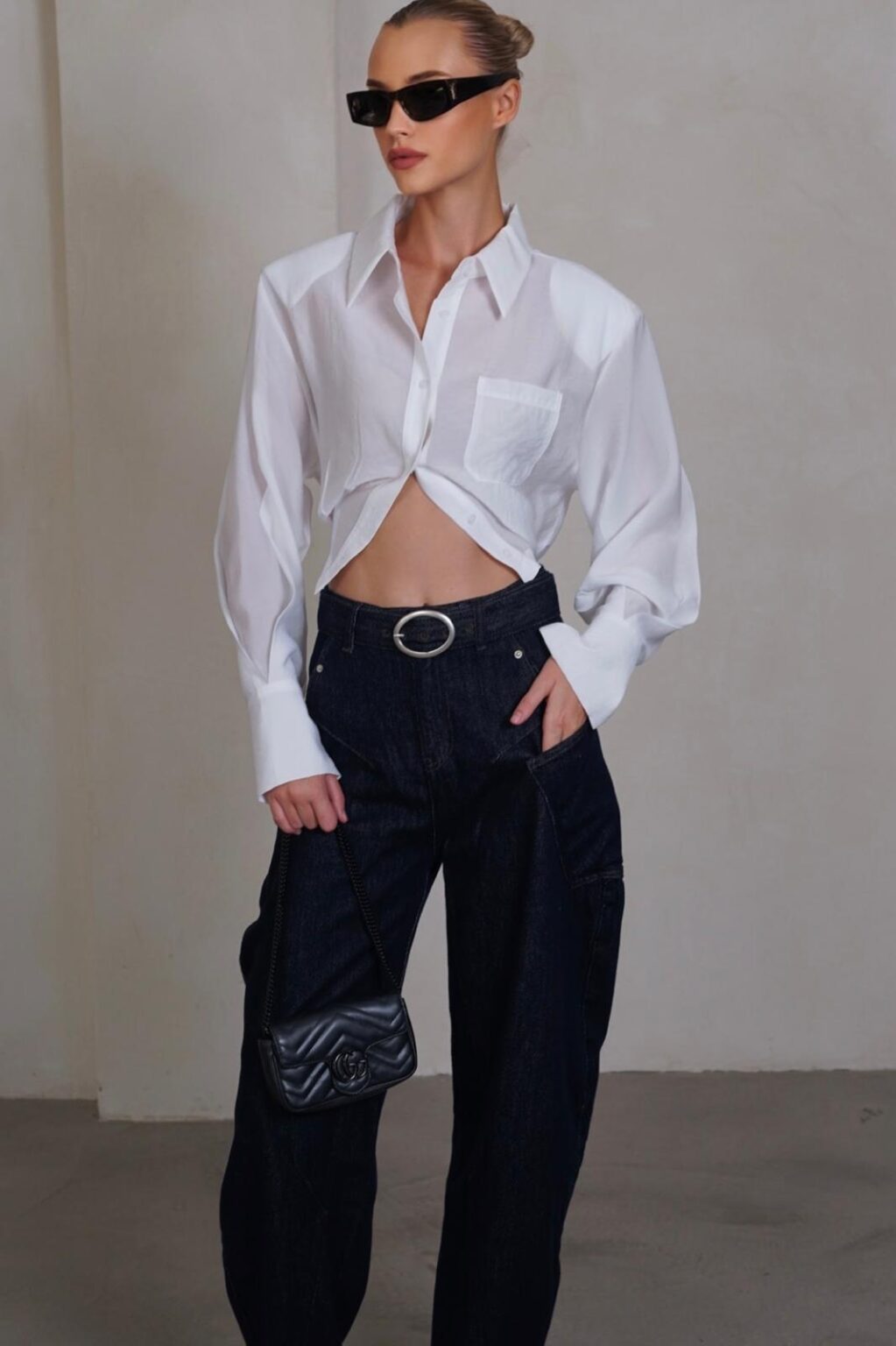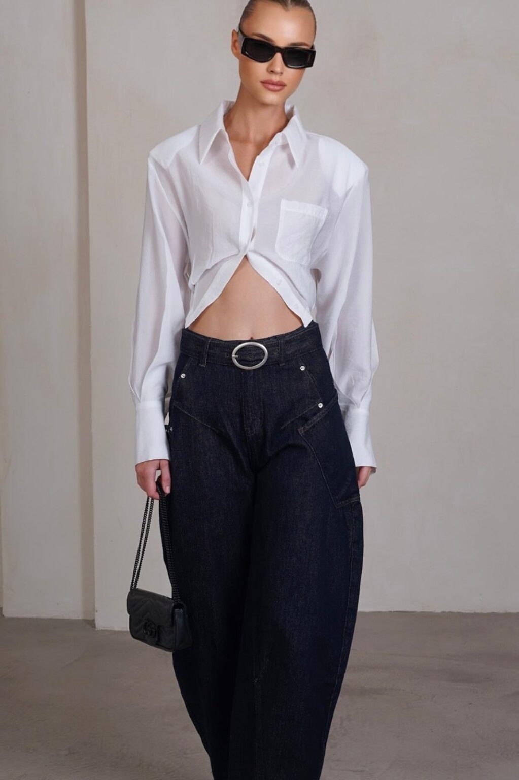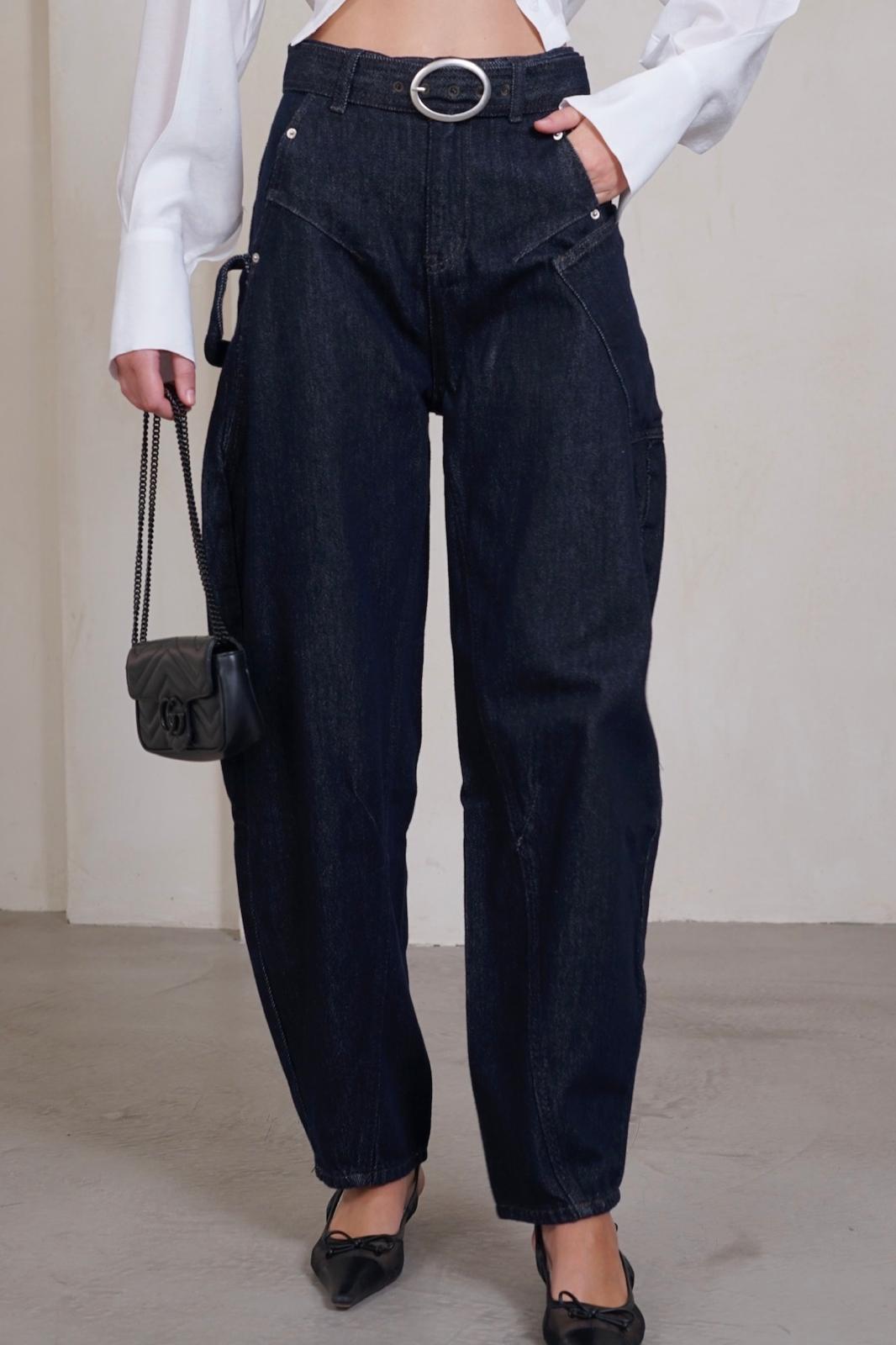 גינס בגזרה מושלמת עם תיפורים וכיסים צדדיים,סיומת ישרה עם חגורת גינס