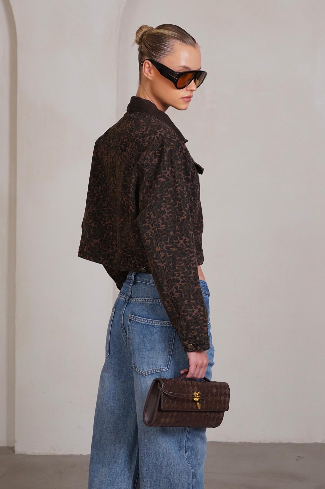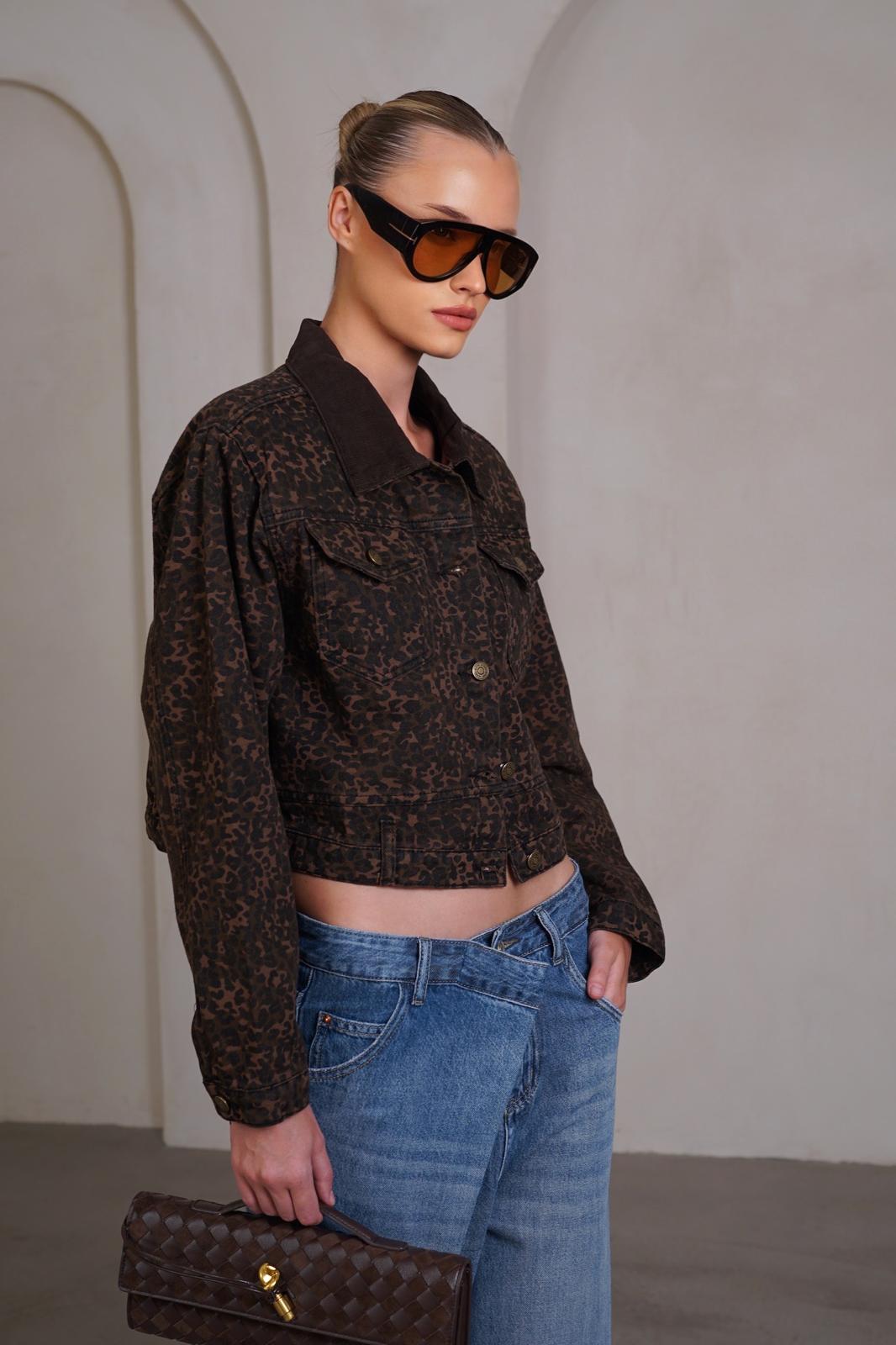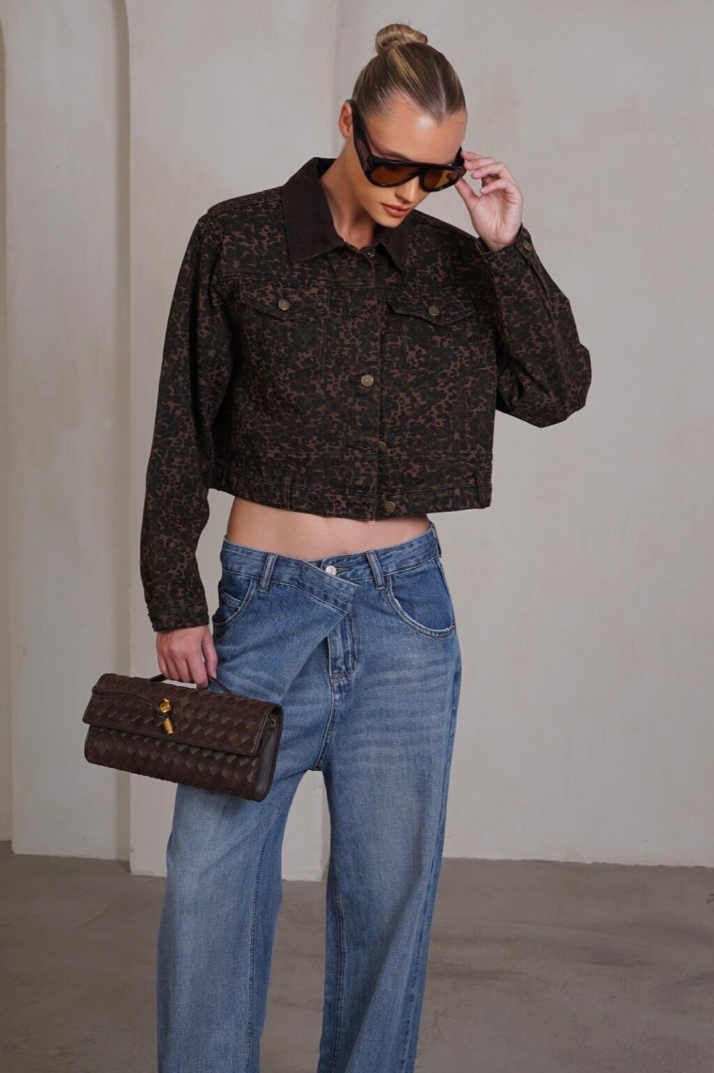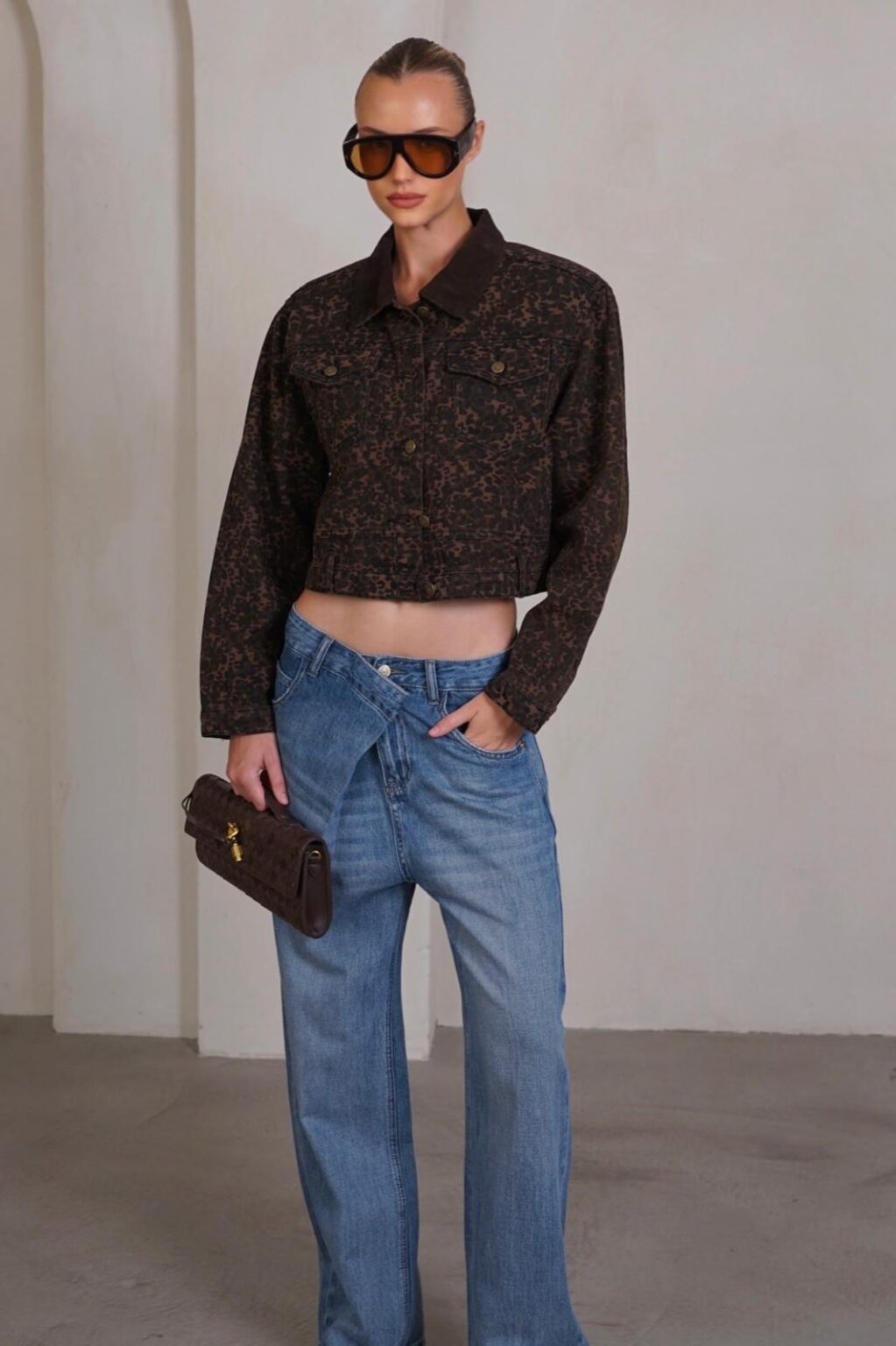 גקט בפרינט מנומר מבד קורדרוי בגזרת קרופ שרוולים ארוכים.