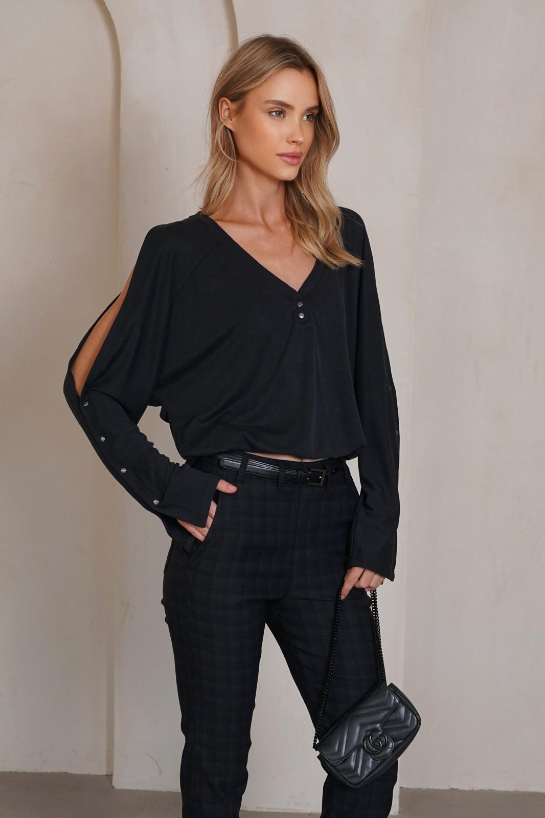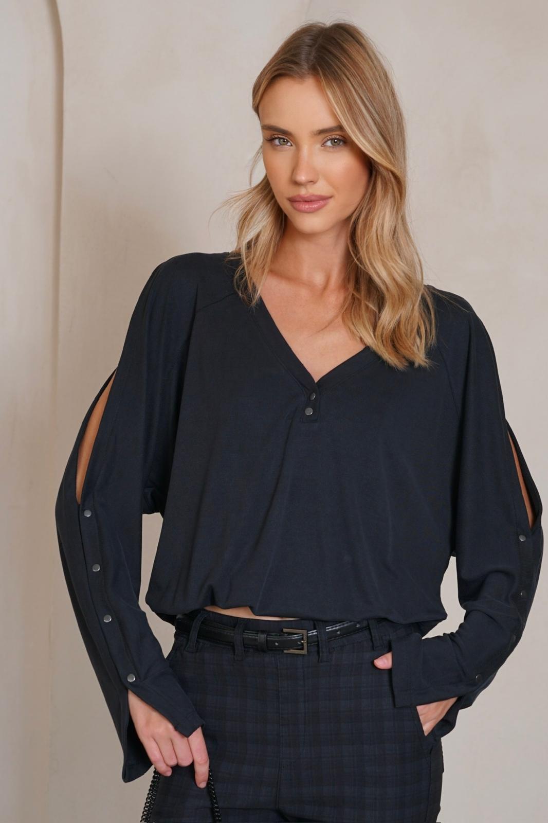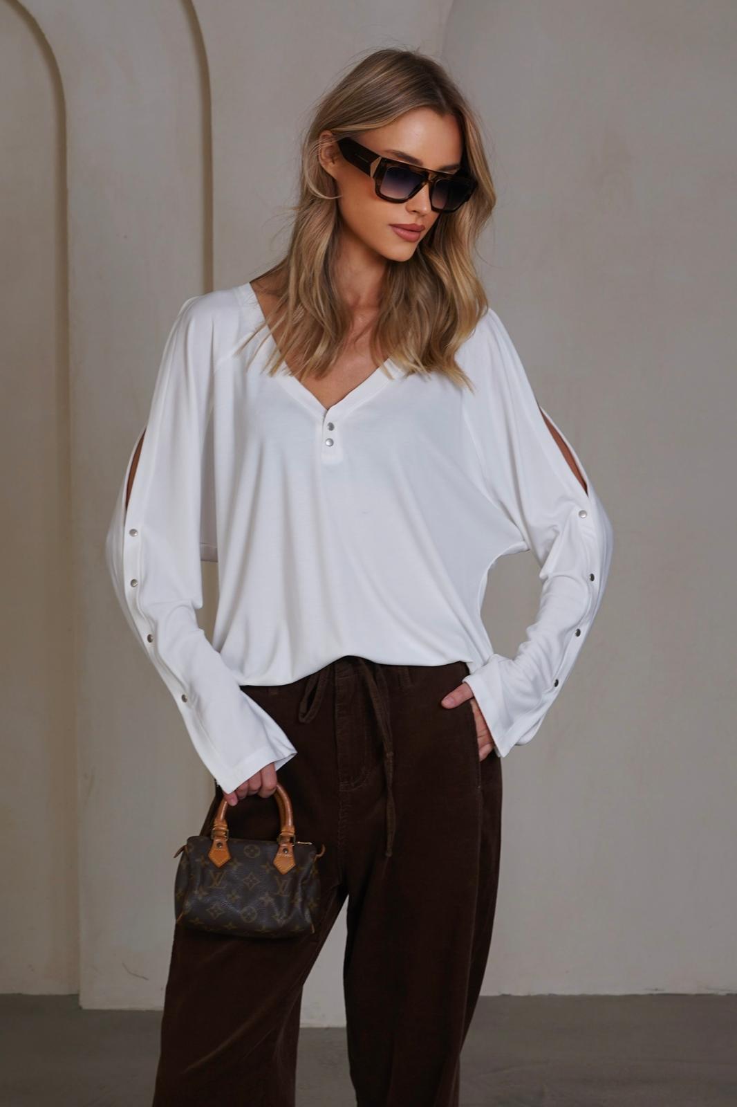 חולצה עם מפתח וי, תיקתקים בשרוולים.
