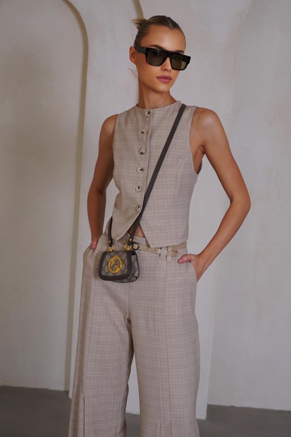 חליפת 2 חלקים, ווסט בסגירת כפתורים ומכנסיים בצבע תואם
