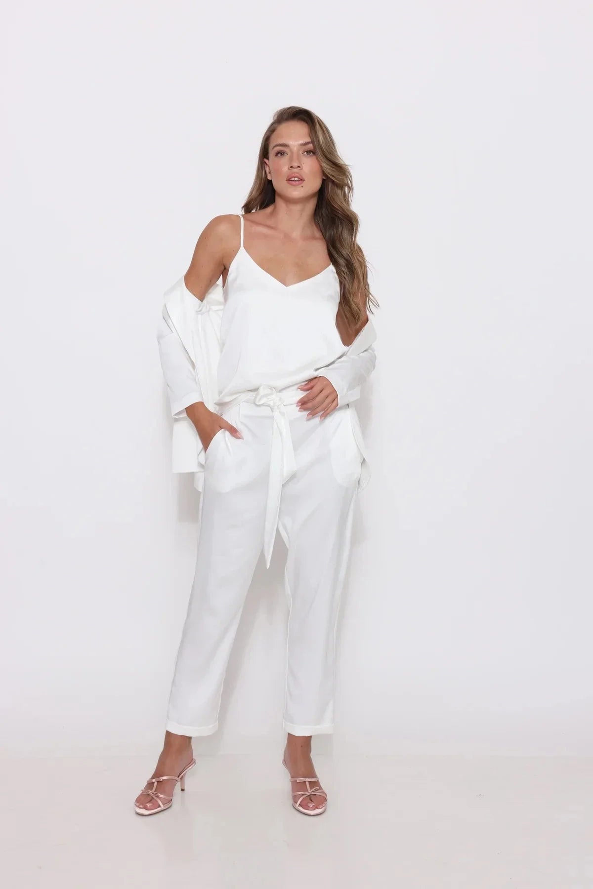 מכנסיים עם גומי בחלק האחורי ועם חגורת בד לקשירה.
