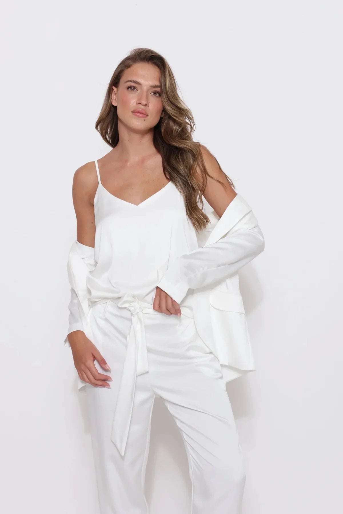 חליפה מחויטת מבד סטן מט , בד נעים וגמיש .