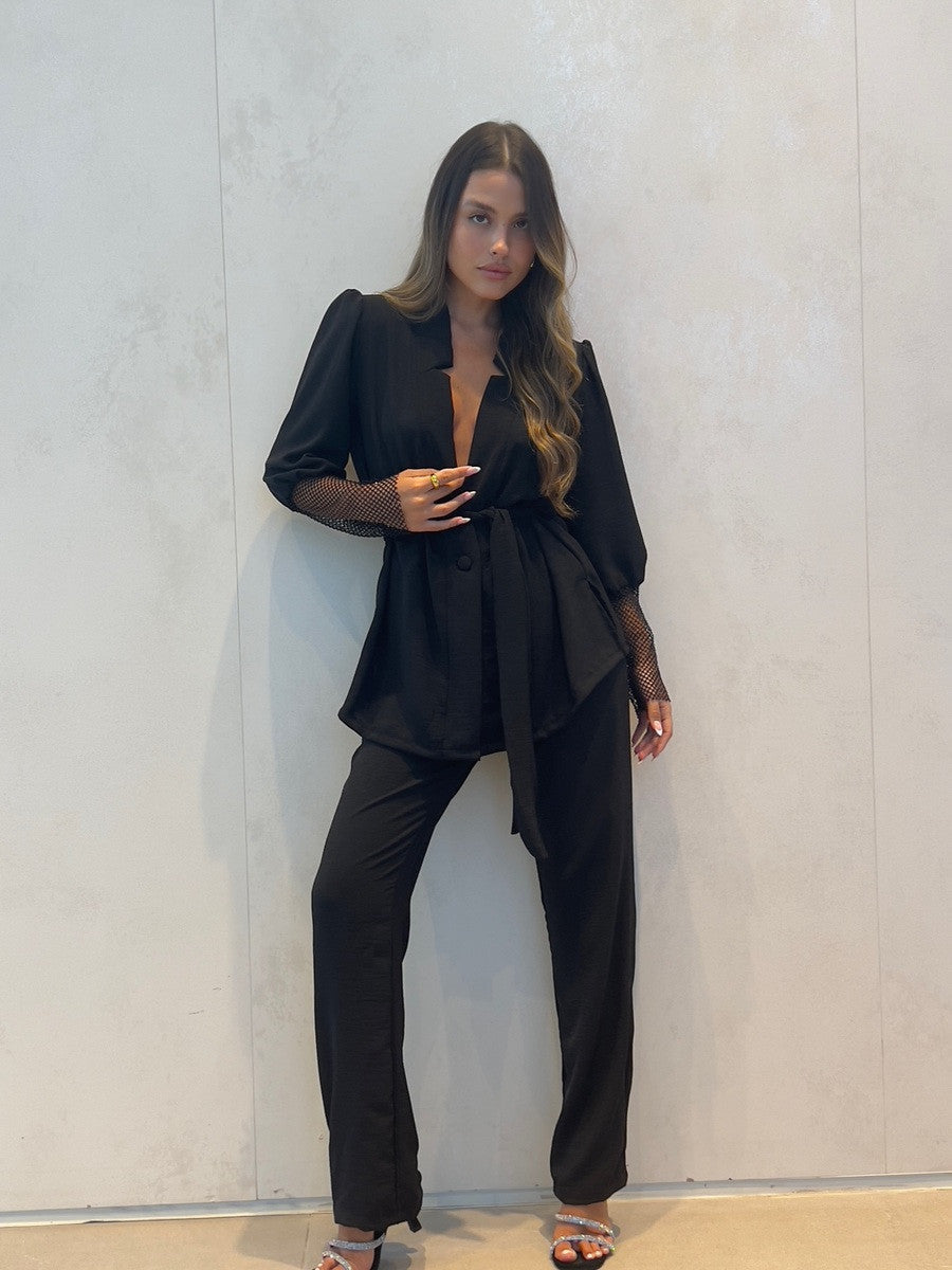 כל פאשניסטה יודעת שהפריט הכי חשוב לעונת האירועים זה חליפה מבד מחמיא לגוף! תגידי שלום לחליפה שתגנוב את כל ההצגה, (מתאימה גם לנשים אחרי לידה .) בד פשתן נשפך אל קמט מכנסיים עם גומי במותן וחולצת עליונית עם כפתור אחד ורשת מנצנצת באיזור המנג׳ט אחת החליפות המחמיאות שתפגשו מגיעה עם חגורה למי שרוצה להדגיש את המותן.