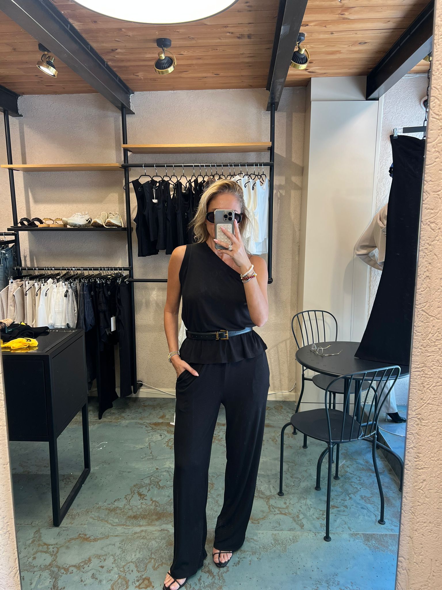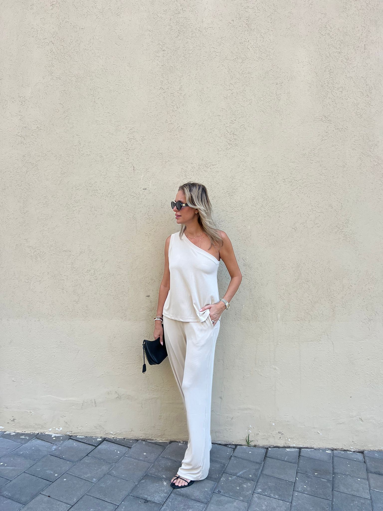 חולצה ואן-שולדר ומכנסיים נשפכים