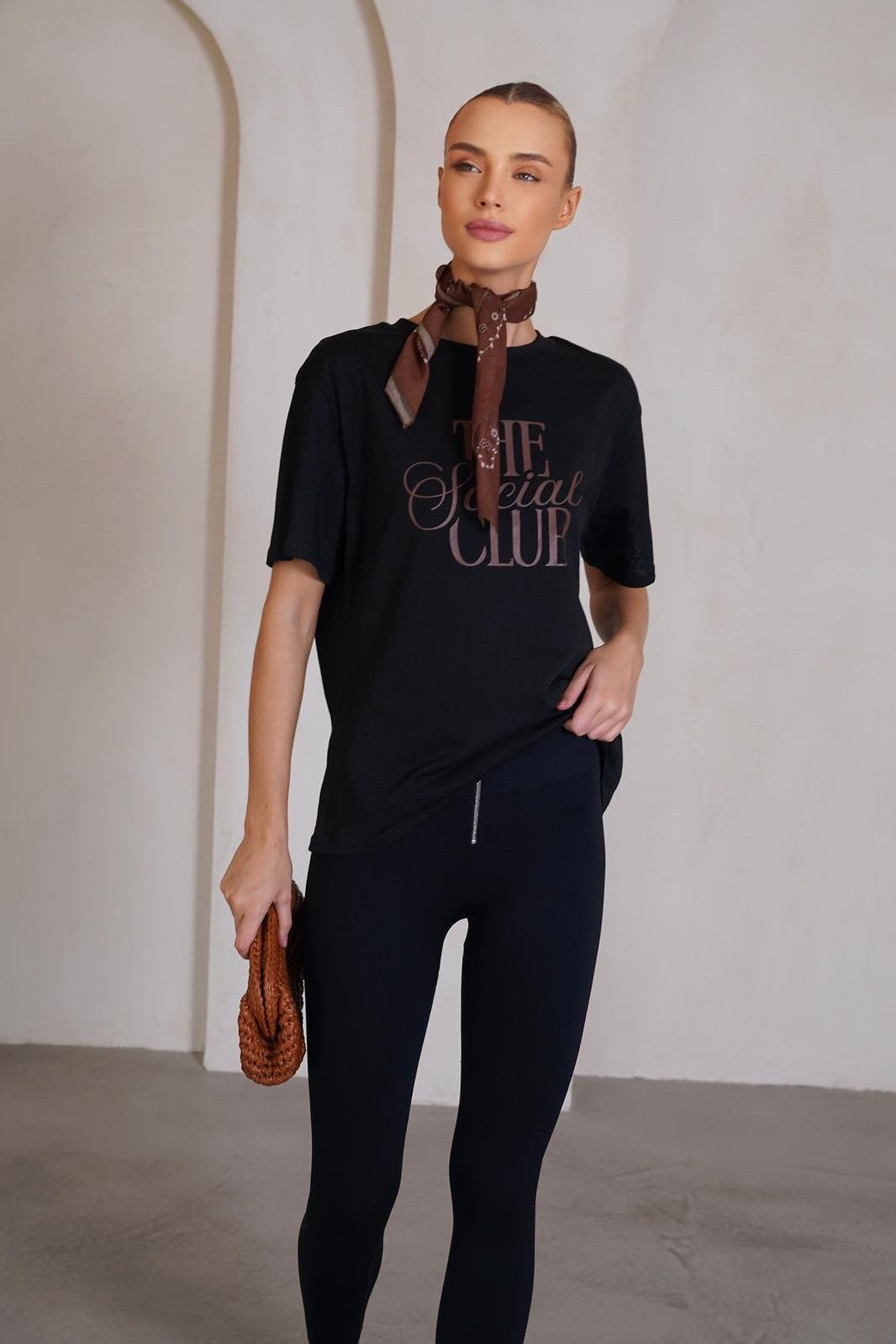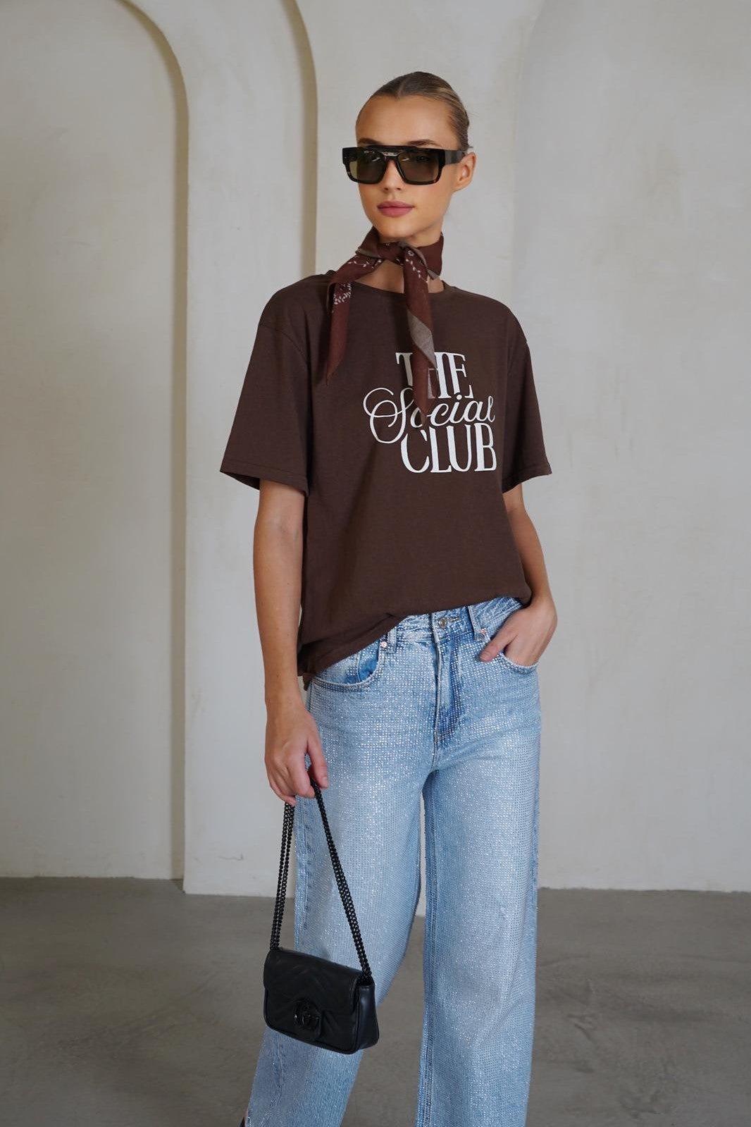 חולצת טי שירט בהדפס טקסט מקדימה, החולצה קיימת במידה אחת – וואן סייז