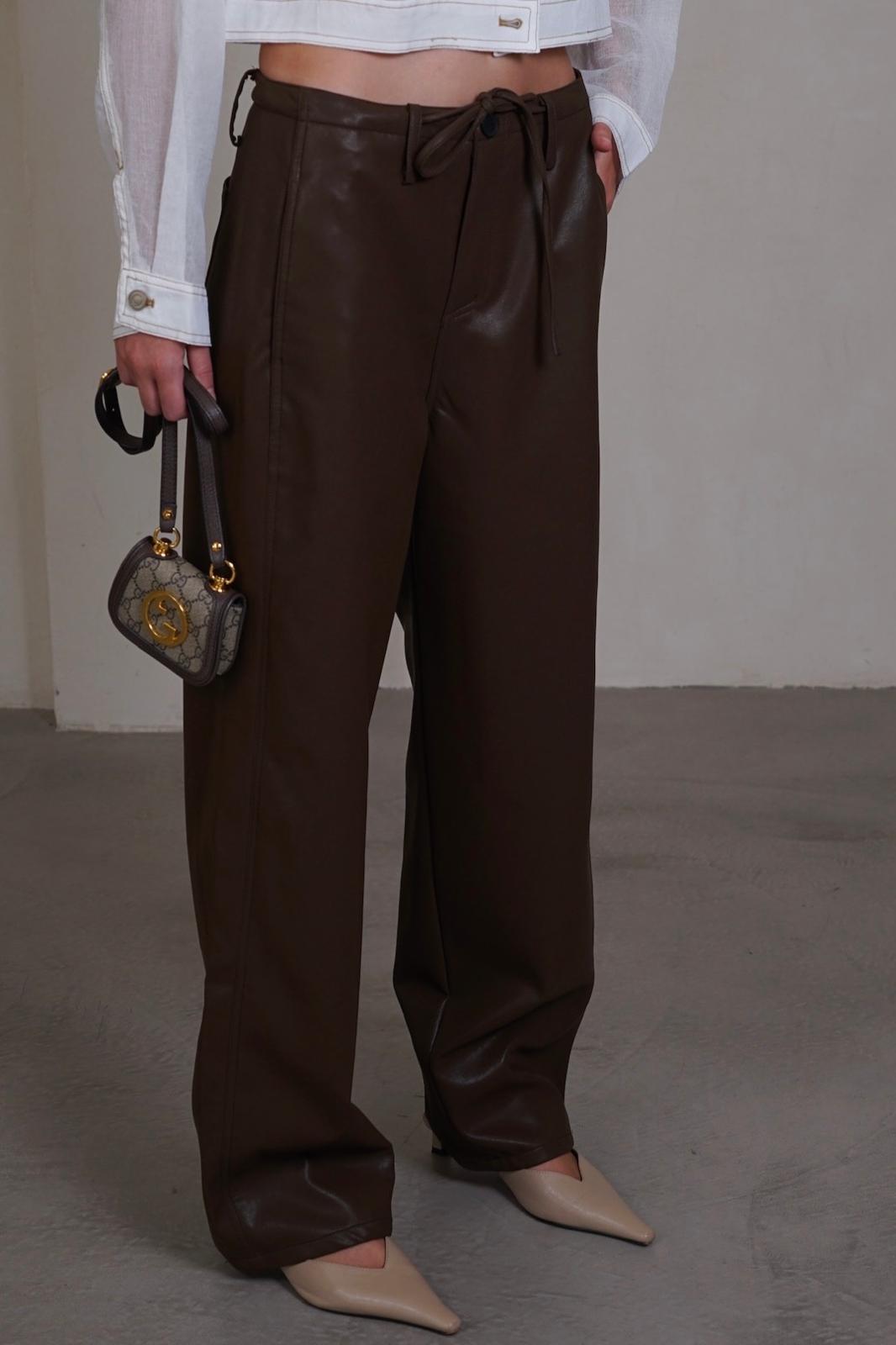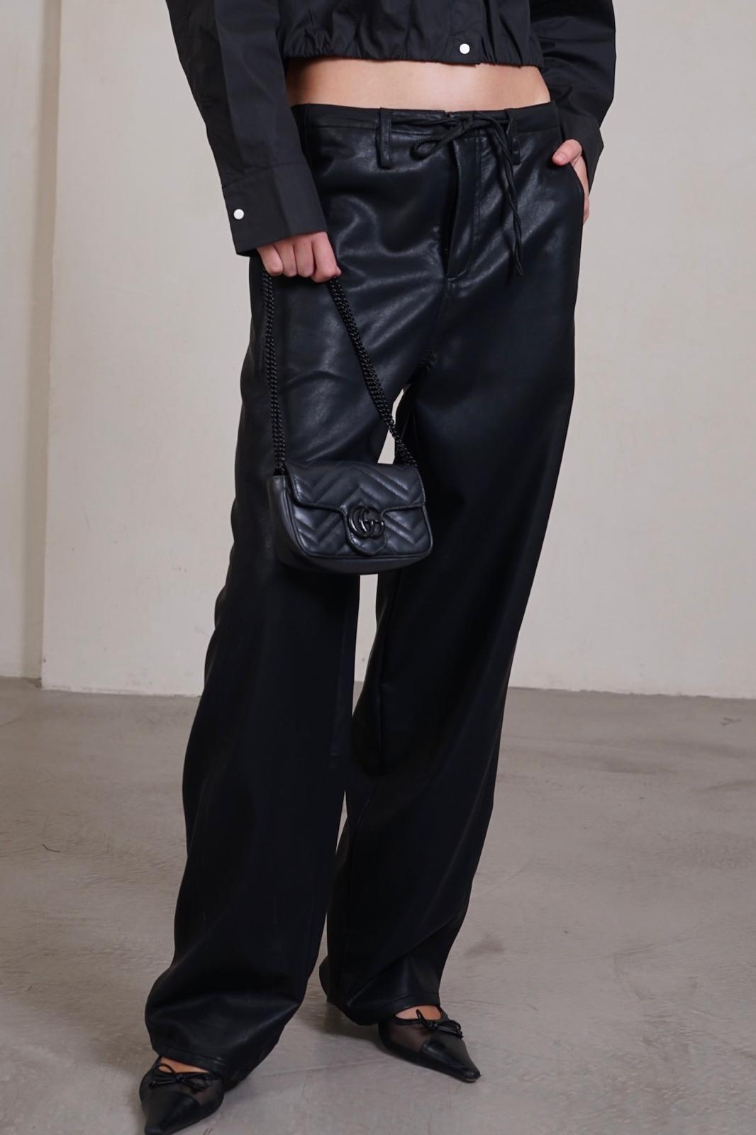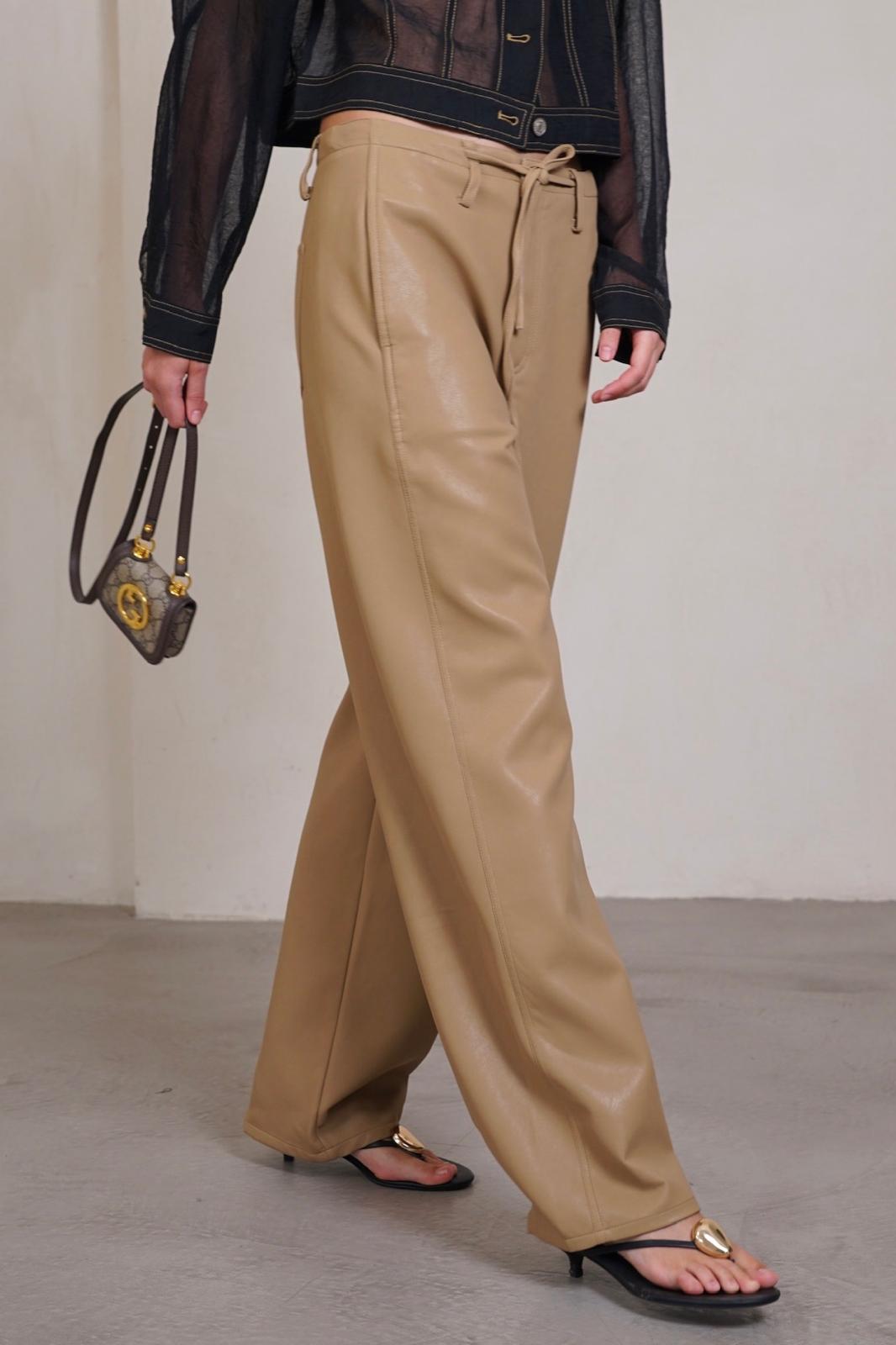 מכנסיים מבד דמוי עור עם קשירה במותן