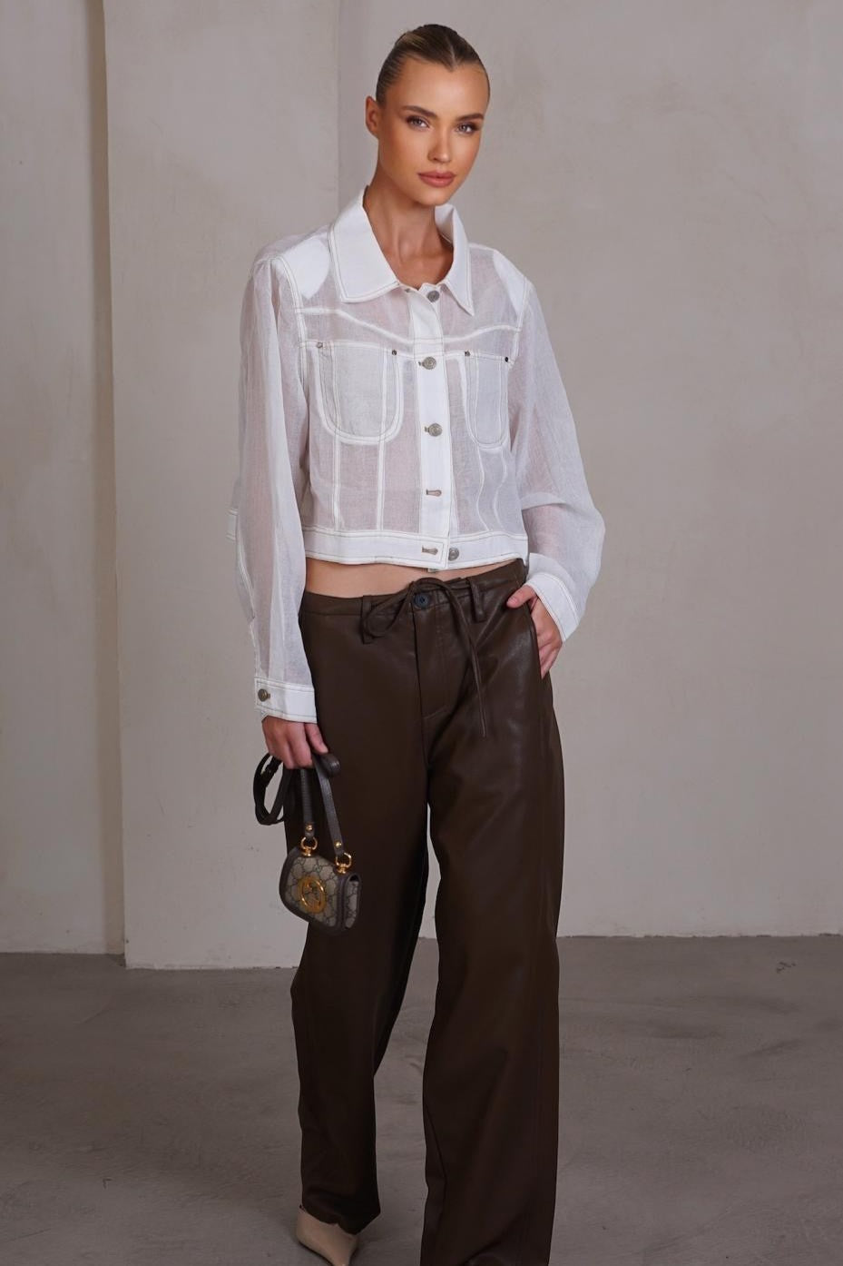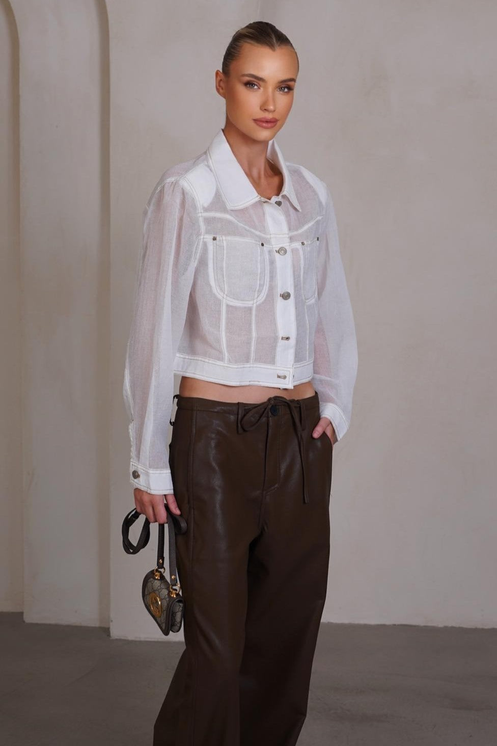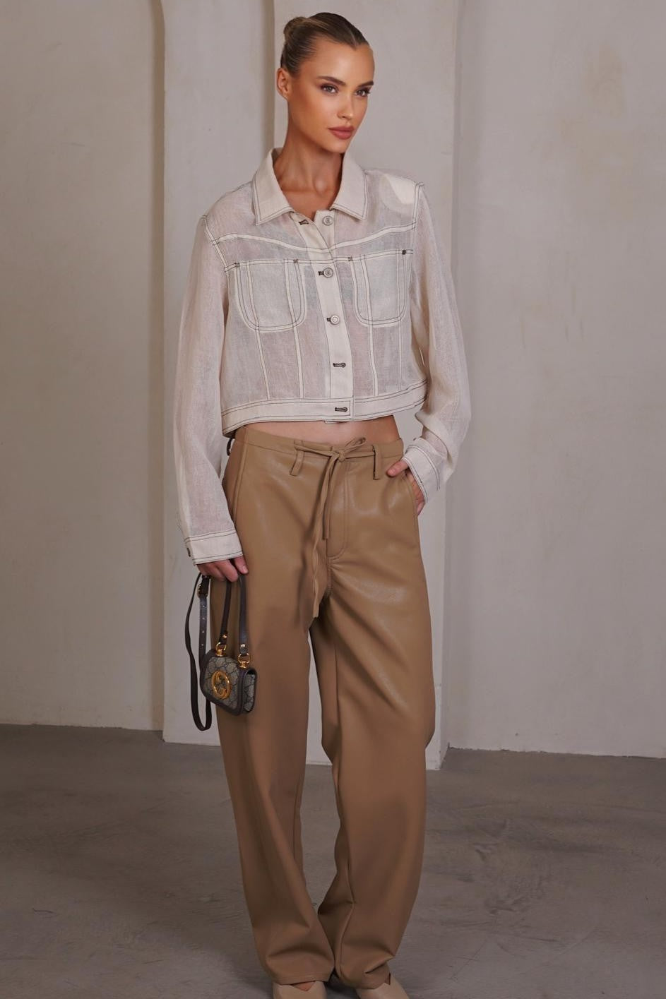 מכנסיים מבד דמוי עור עם קשירה במותן