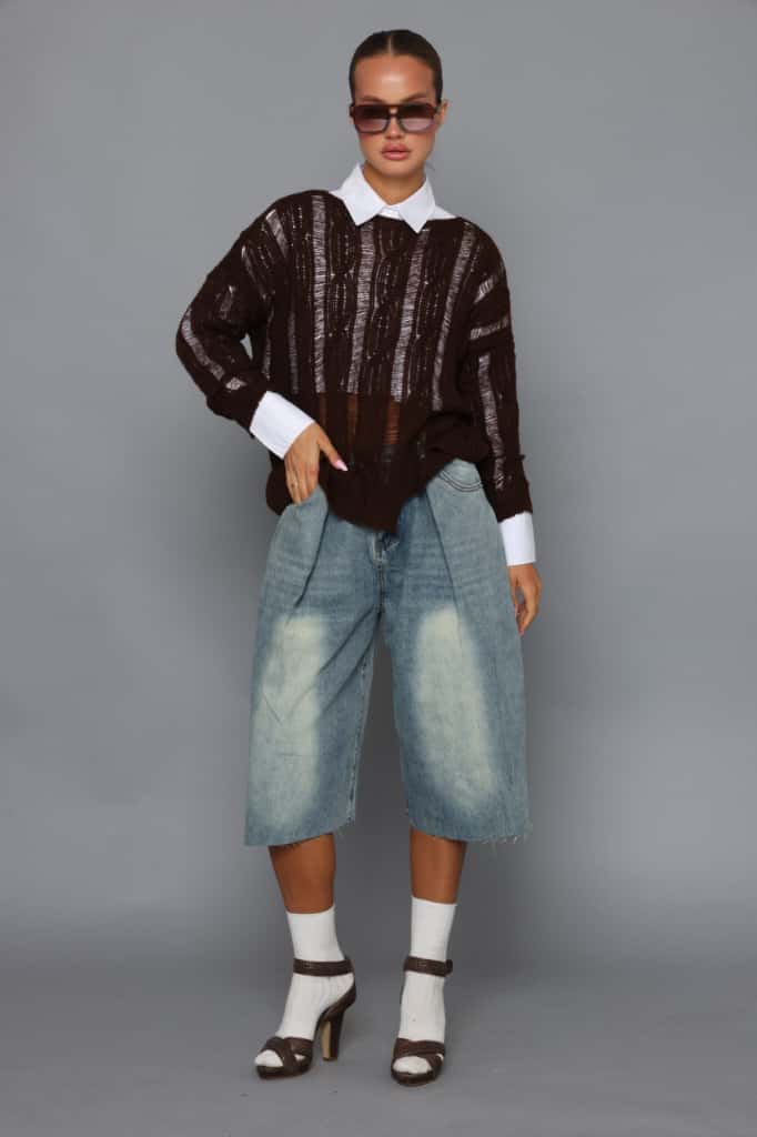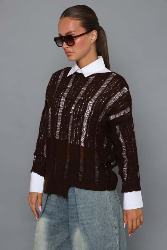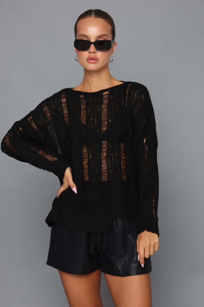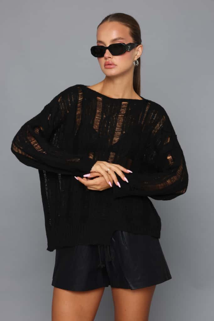 סריג קליל ומדויק לעונה, בעיצוב ארוג ושקפקף שמעניק מראה נשי ורך. דוגמת סריגה רחבה שיוצרת טקסטורה מעניינת, גזרה נינוחה עם שרוולים ארוכים ונפילה טבעית. אידיאלי לשילוב מעל גופייה או טופ צמוד ליצירת לוק אופנתי ושיקי בסטייל אורבני.