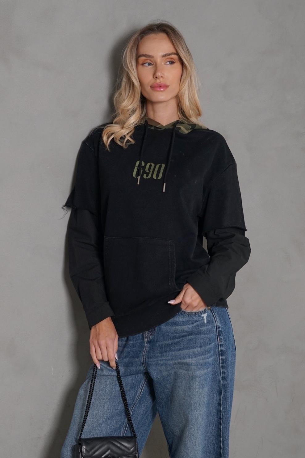קפוצ'ון בשילוב בד שונה בשרוול וכובע טקסטורה