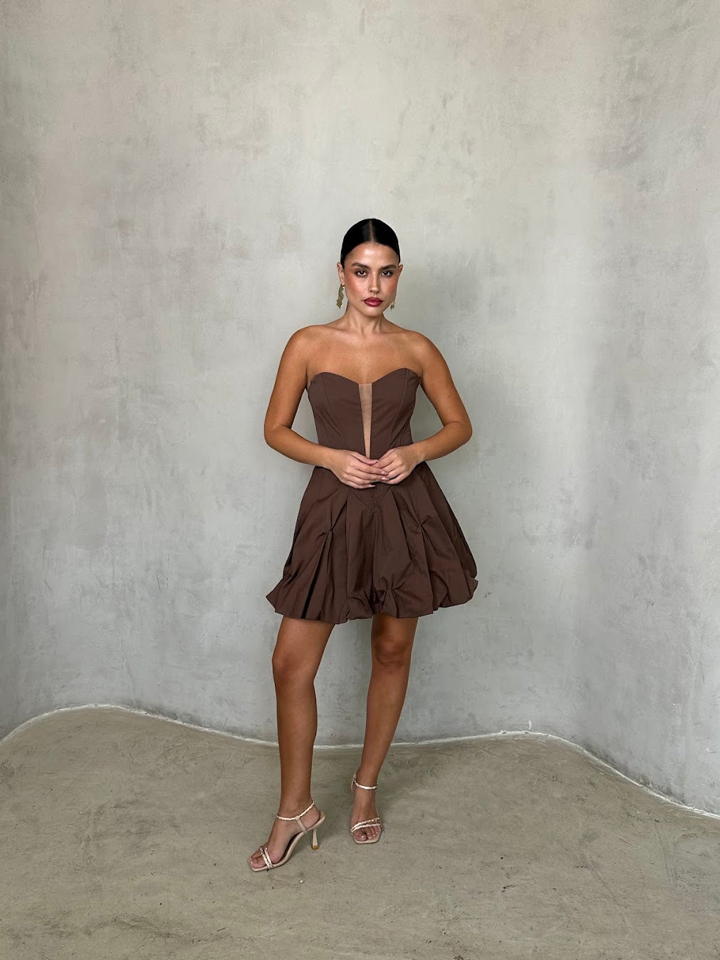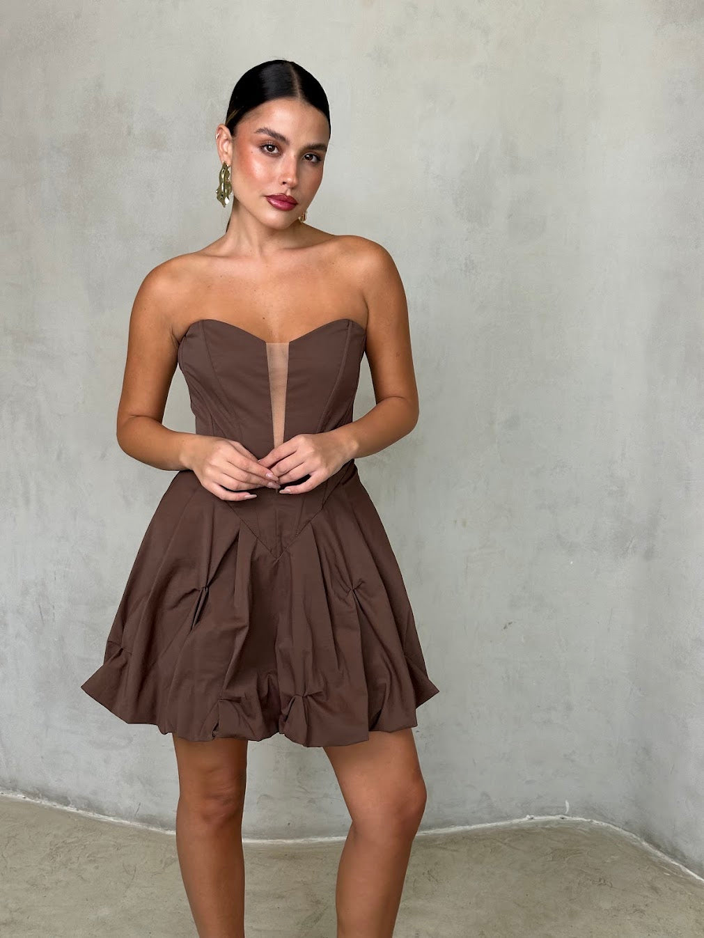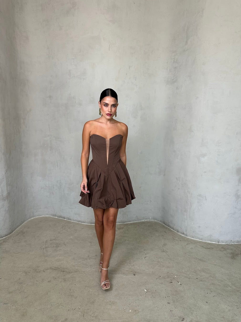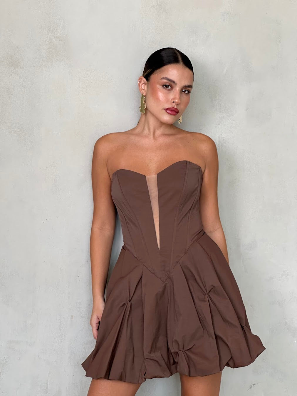 שמלת מיני סטרפלס עם מחוך מובנה ומחשוף עדין בשילוב בד שקוף במרכז. החצאית המעוצבת בקפלים קלילים יוצרת נפח רך ומראה צעיר ומלא שיק. בד קליל ונעים למגע, מושלמת לאירוע ערב, דייט או יציאה אופנתית עם נוכחות.