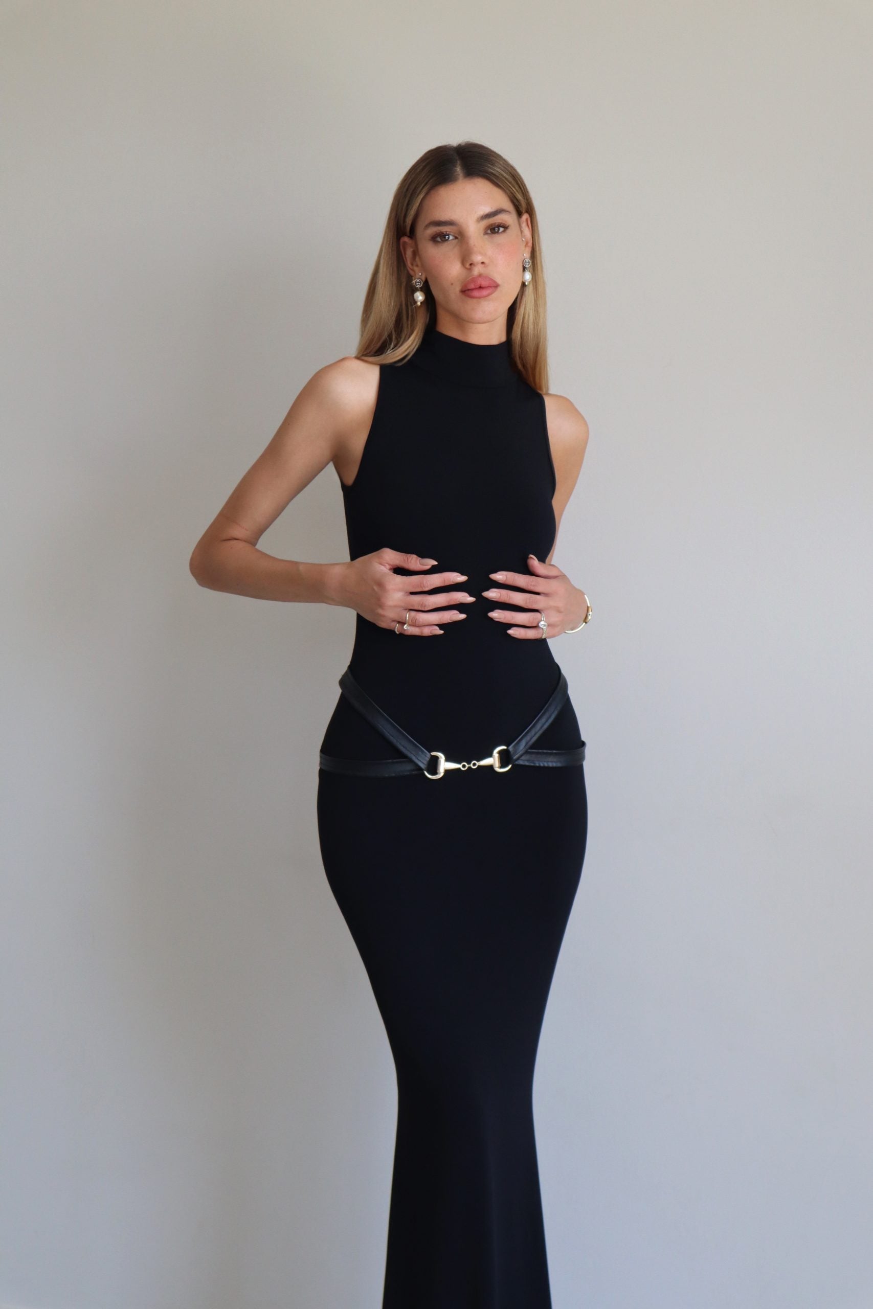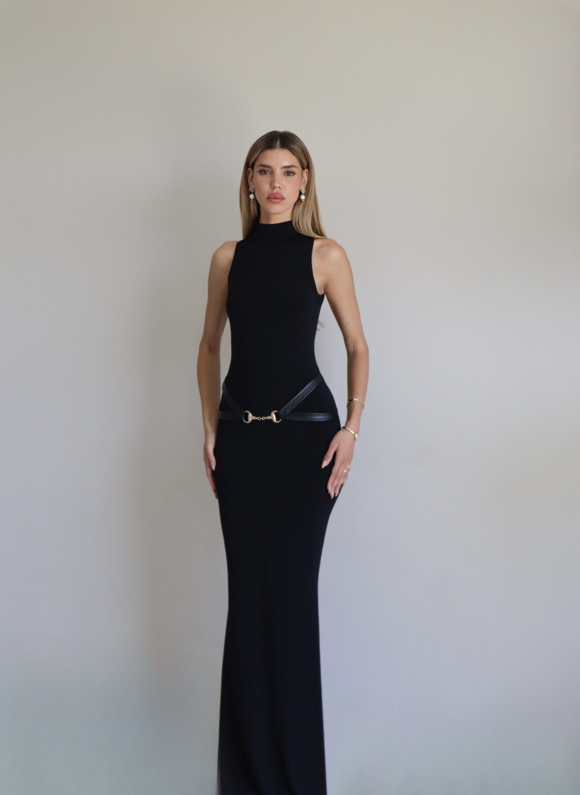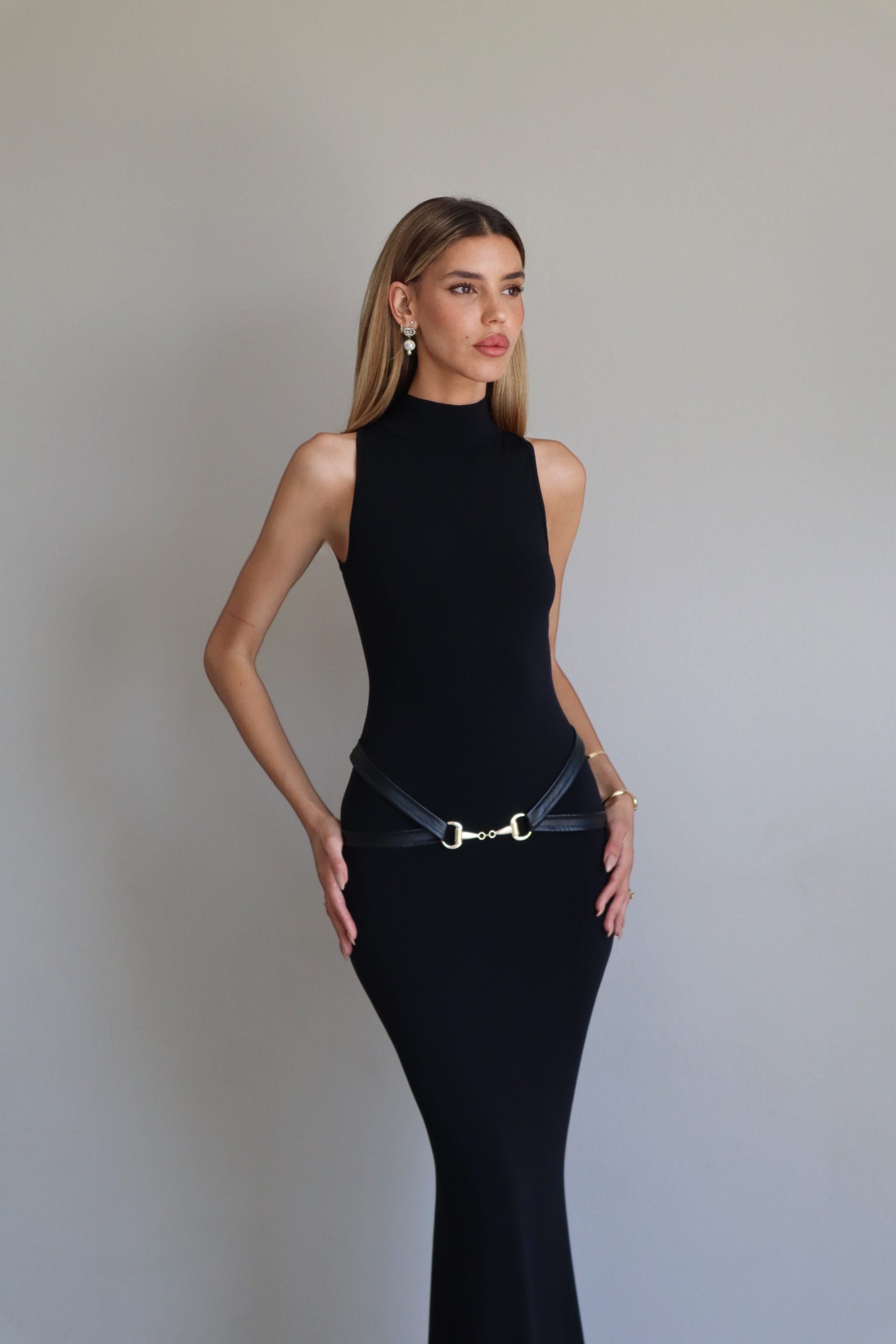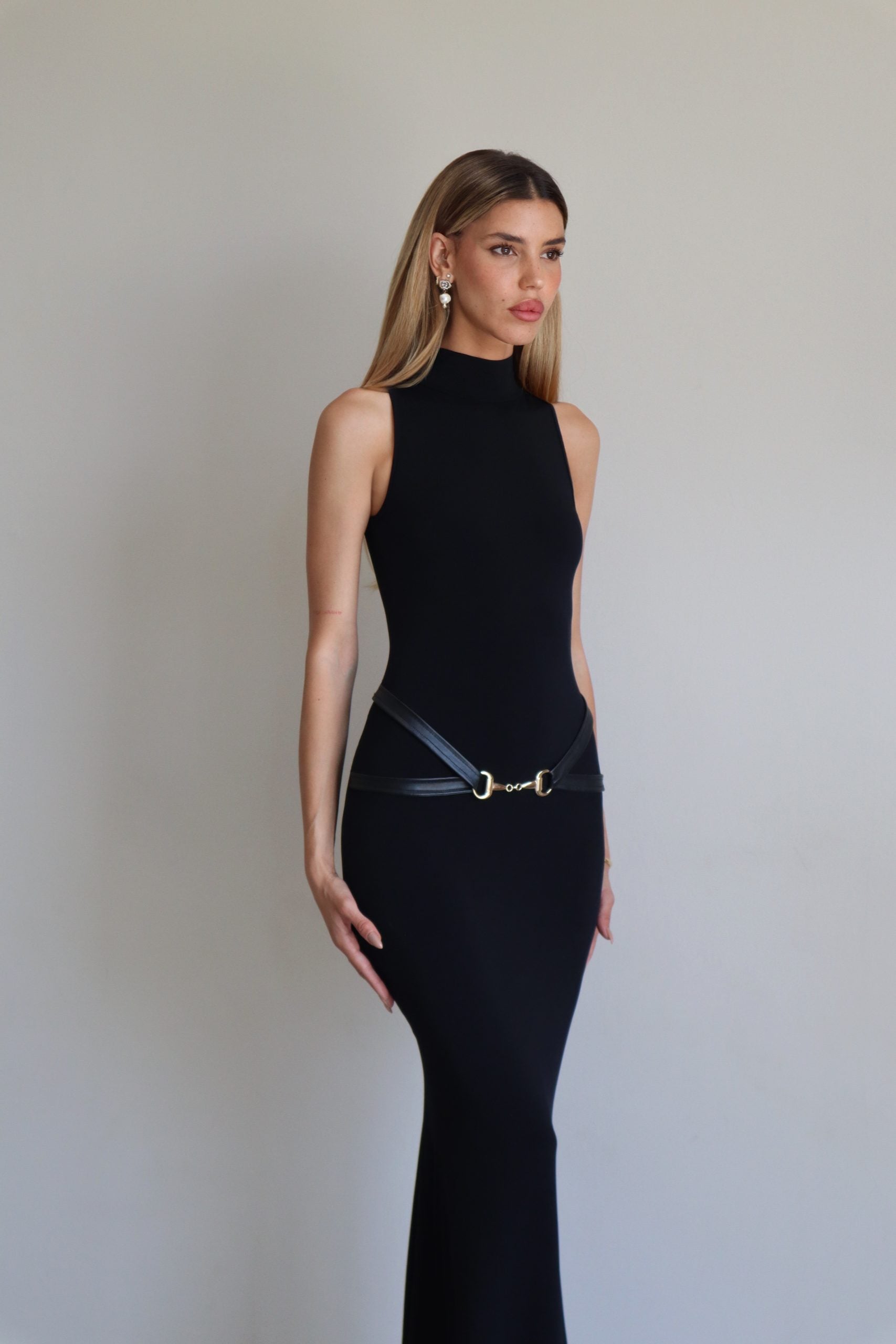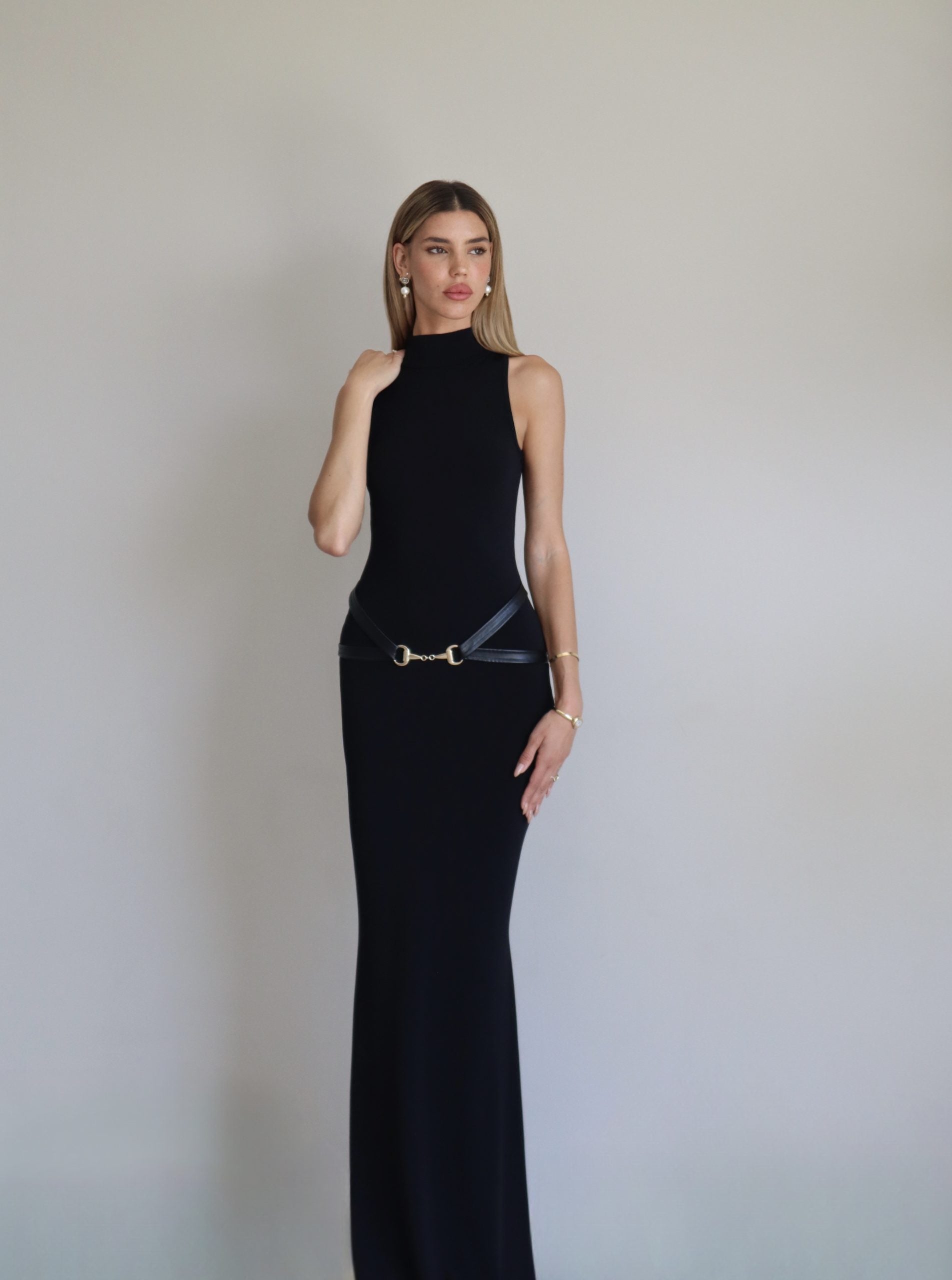 שמלת מקסי שחורה צמודה