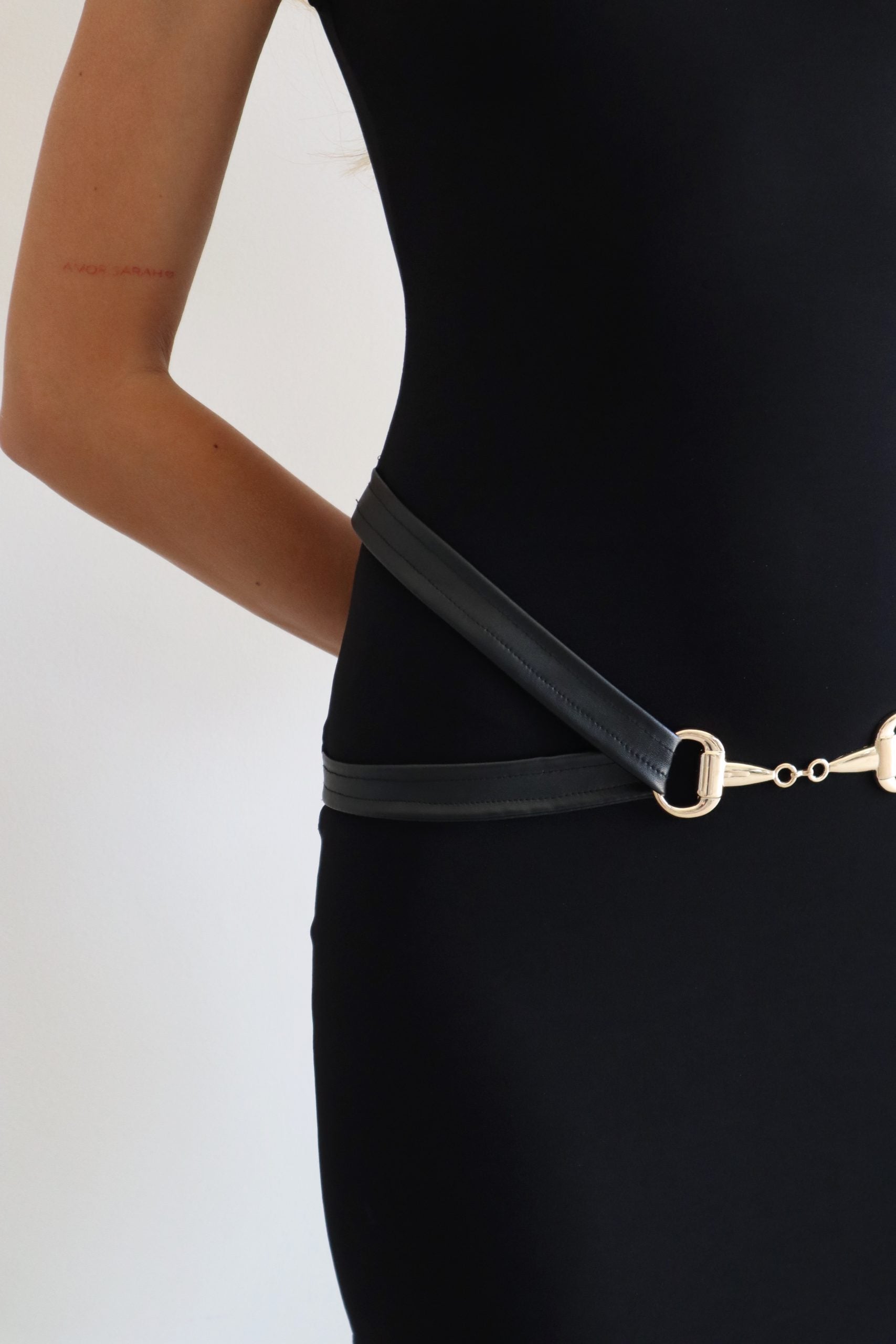 בשילוב חגורות עור ואבזם זהב