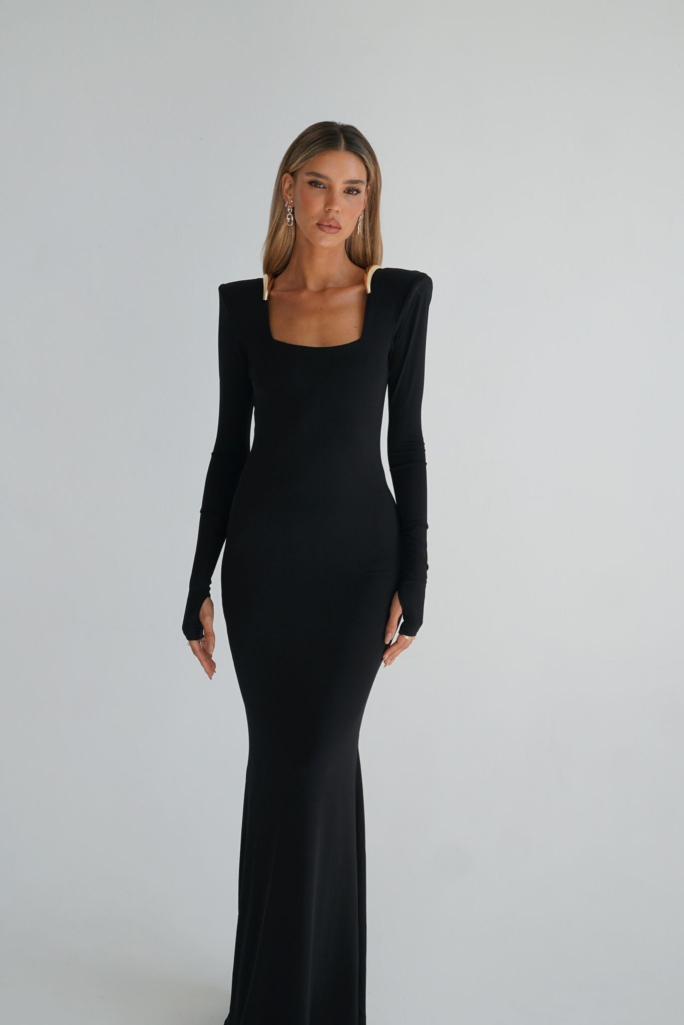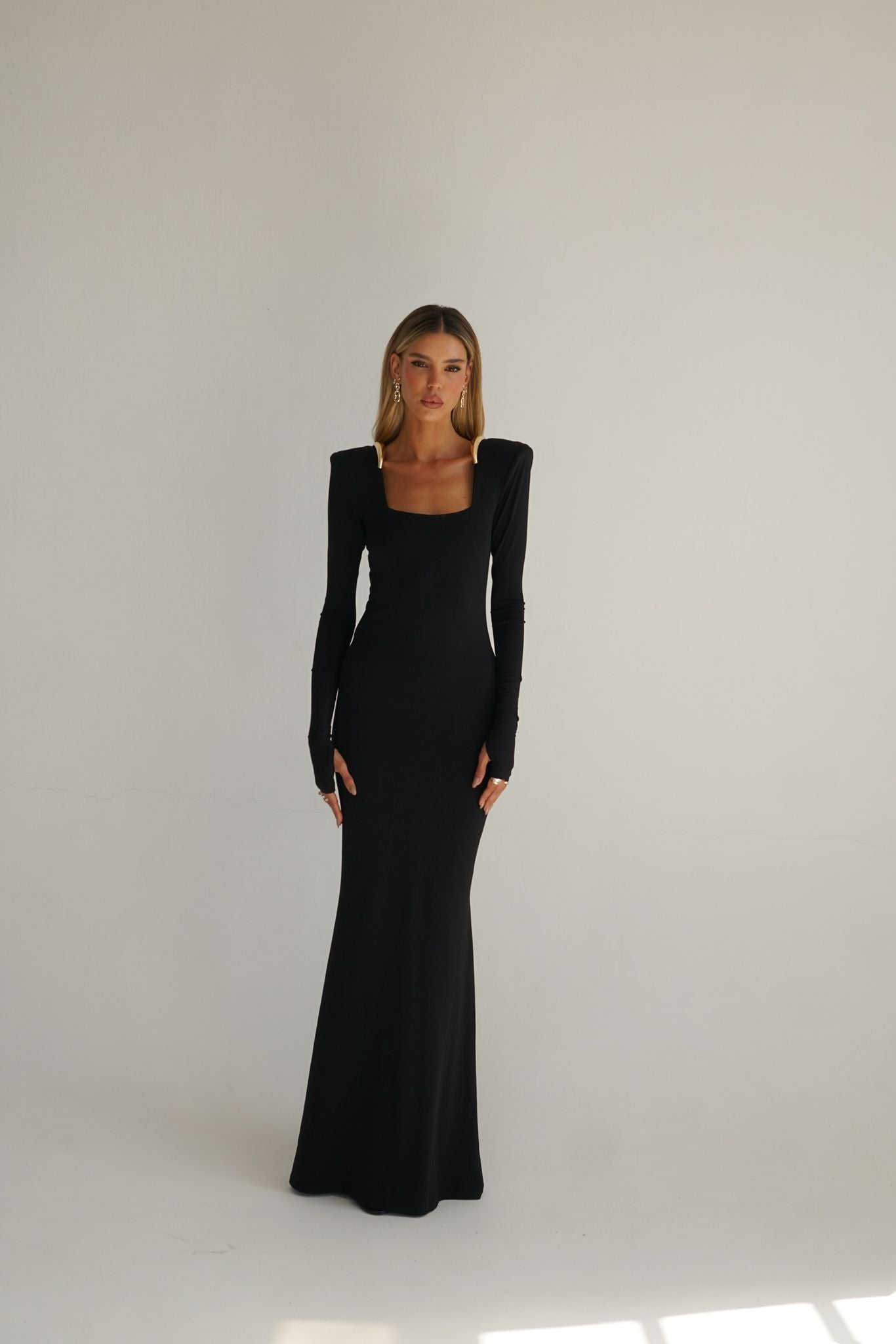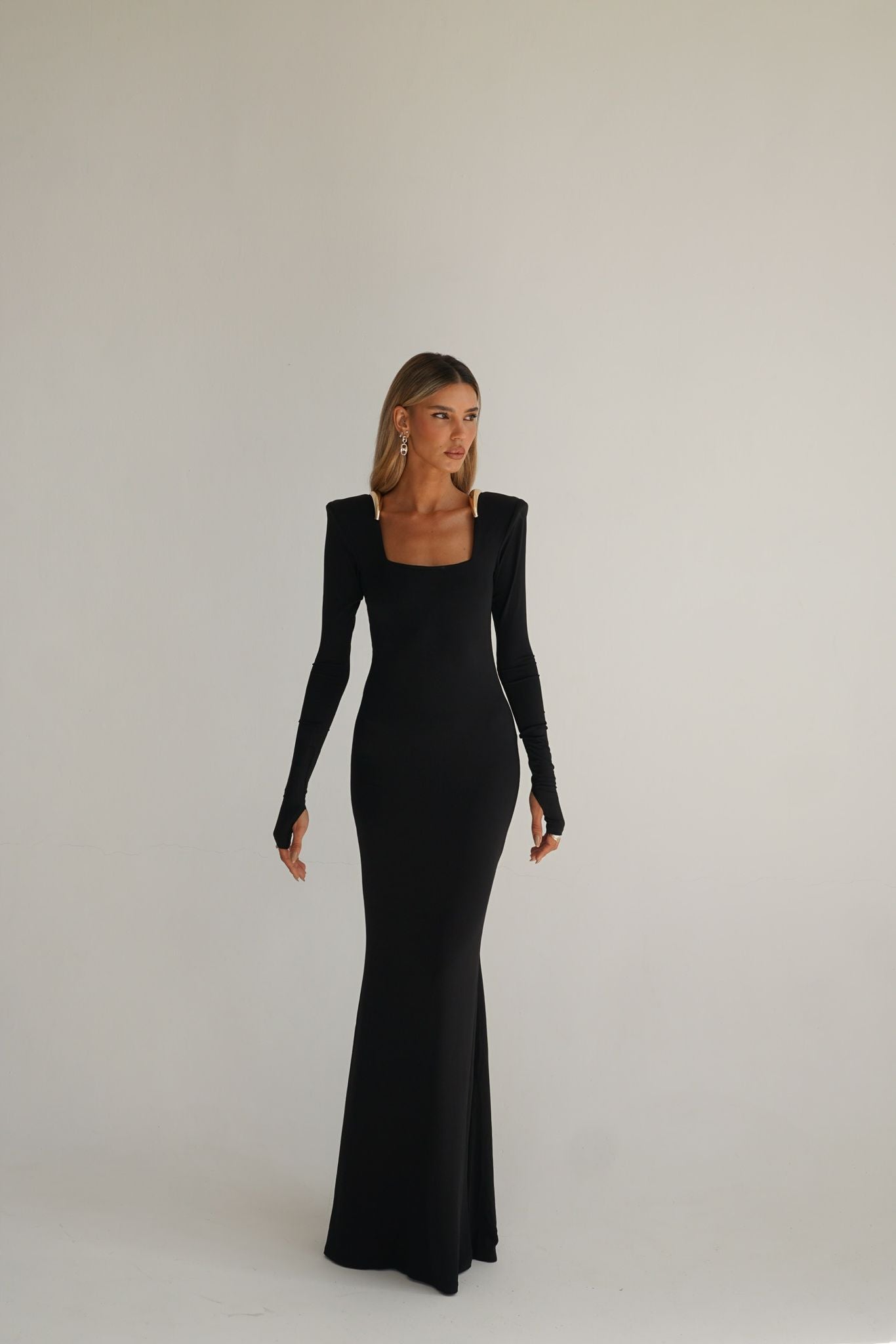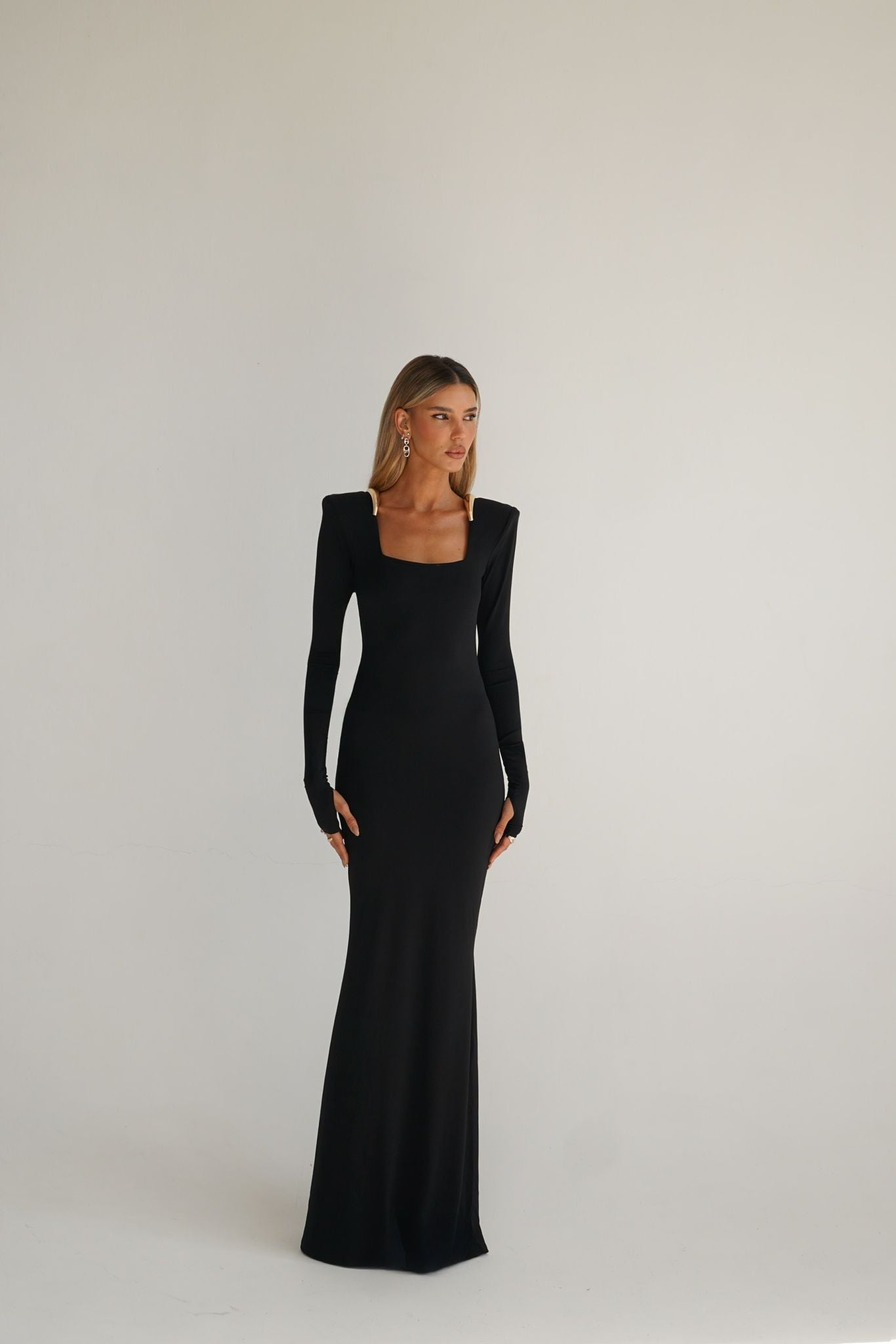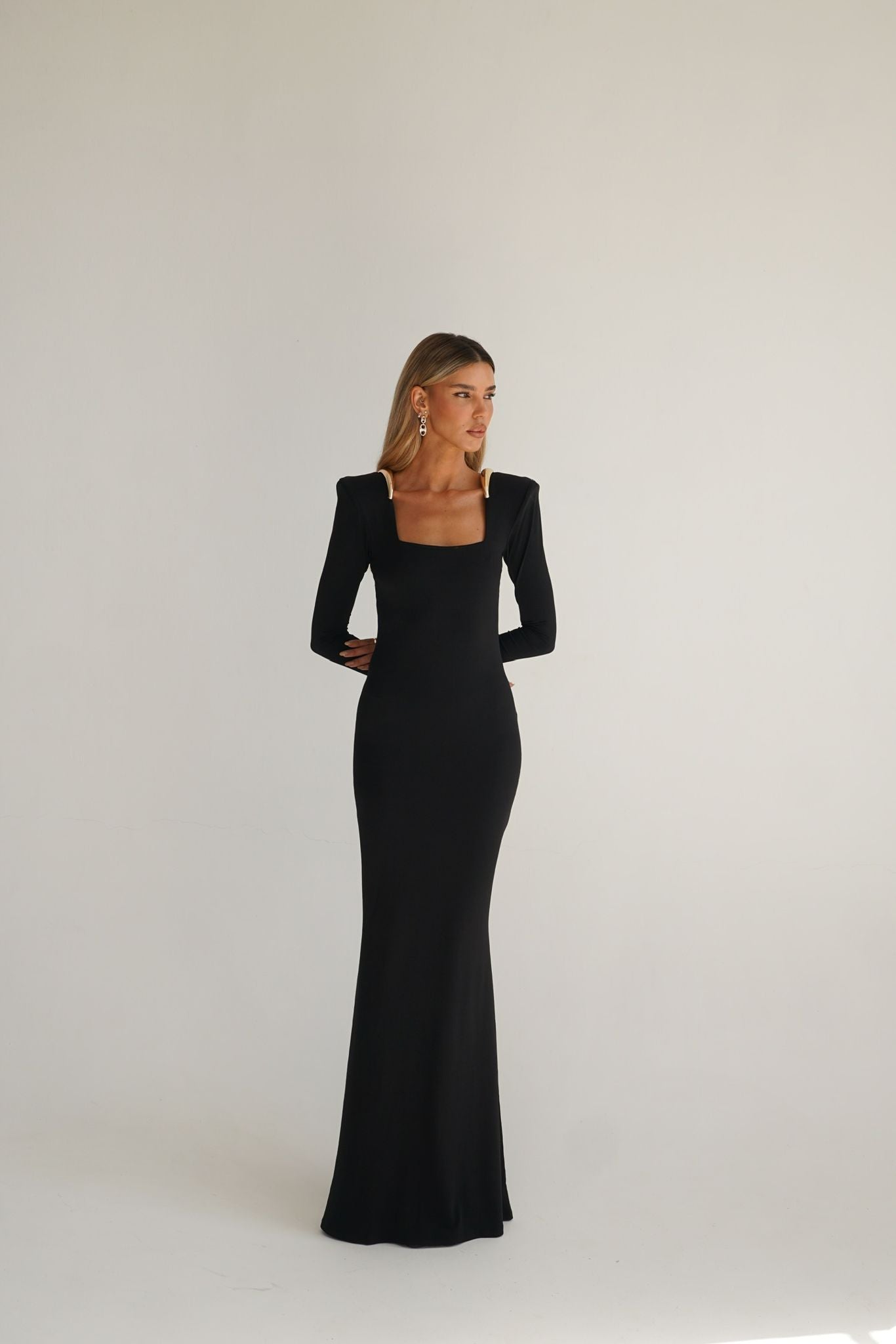 שמלה מקסי שרוולים ארוכים מחשוף מרובע צנועה ומדוייקת לאירוע הבא שלך