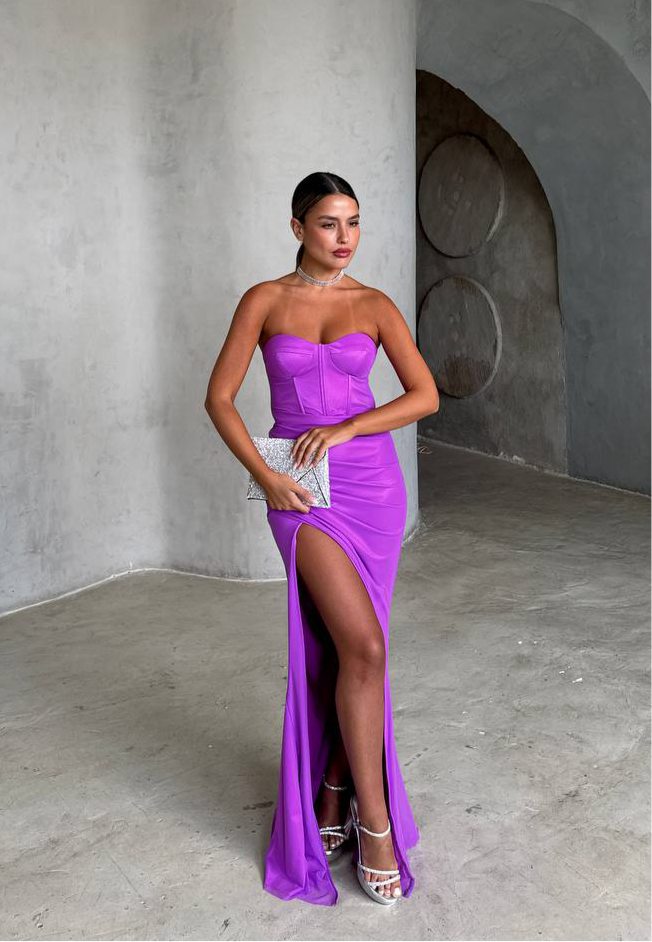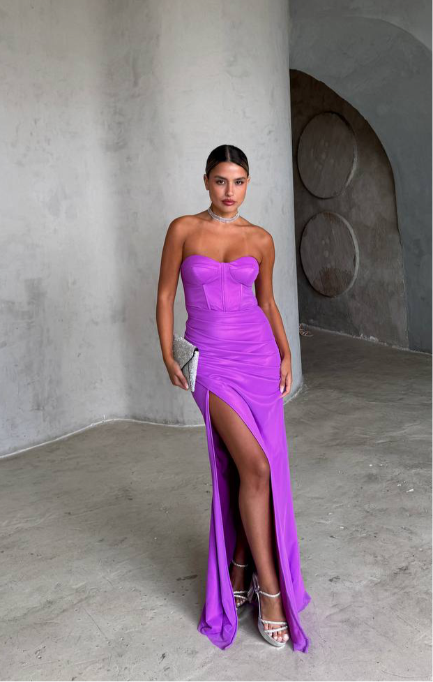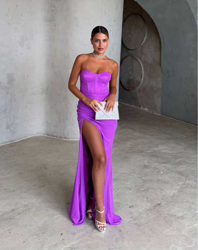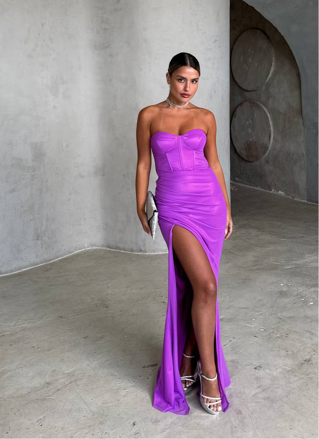 שמלה מחוך מקסי בגזרה צמודה בשילוב שיפון